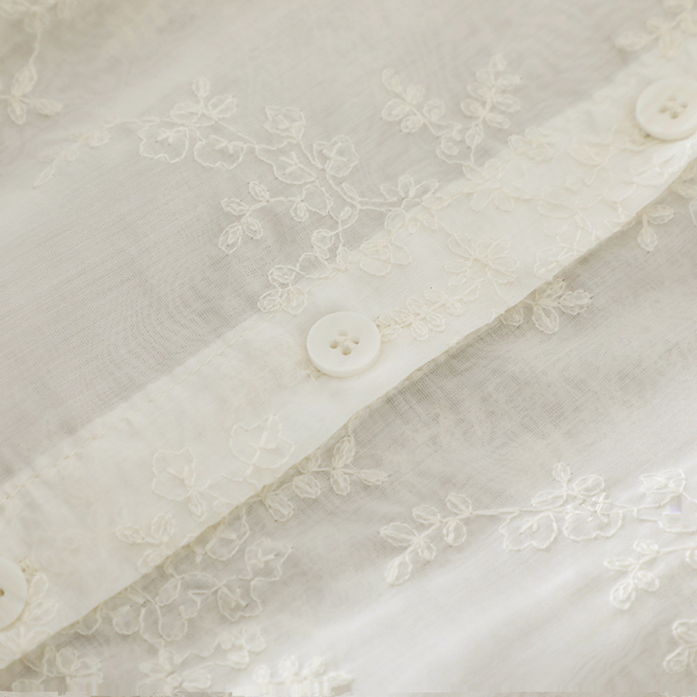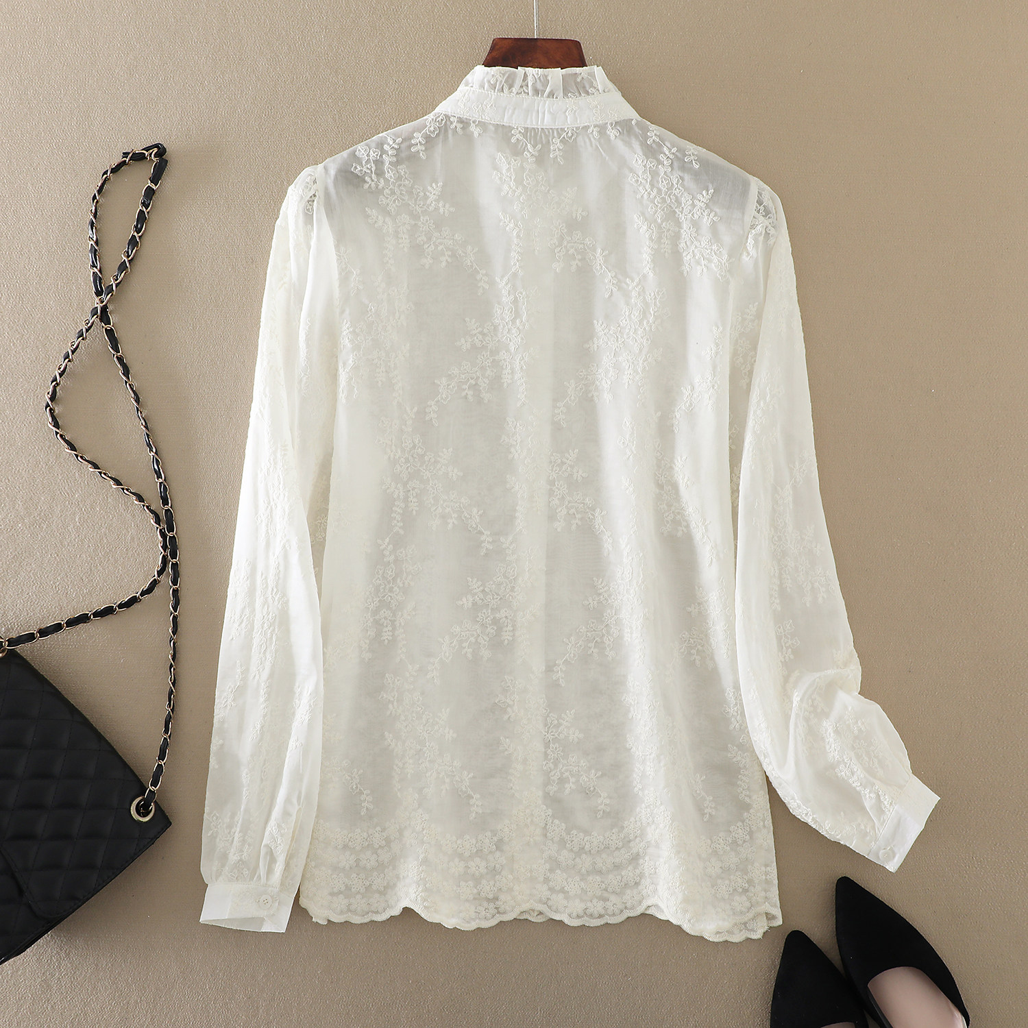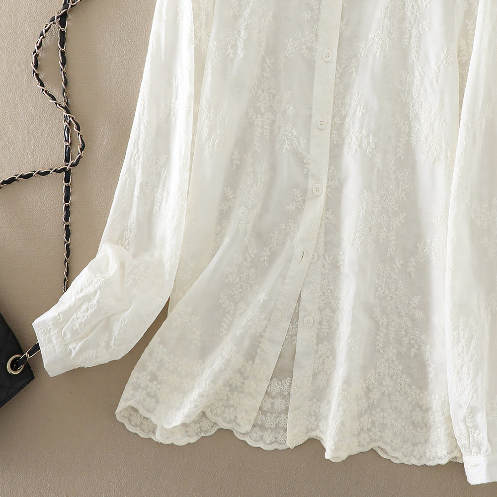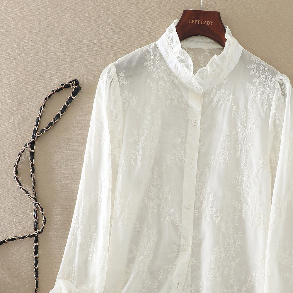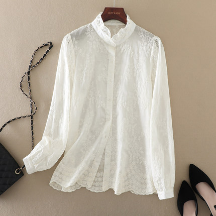 2025春季新款女装重工刺绣木耳领长袖衬衫设计感百搭休闲气质上衣