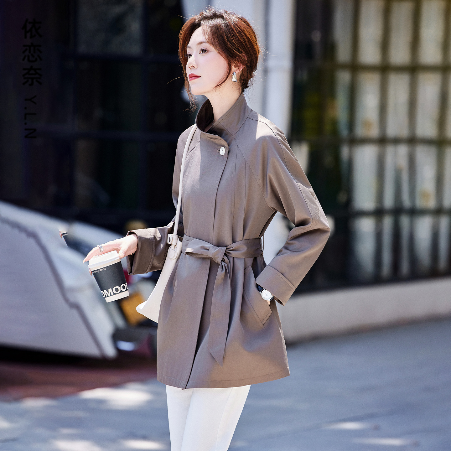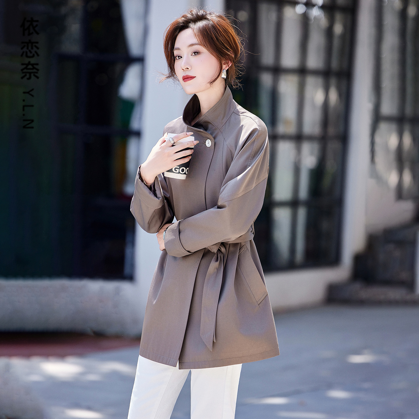 风衣外套女中长款春秋季2025新款爆款高级感时尚气质立领收腰上衣