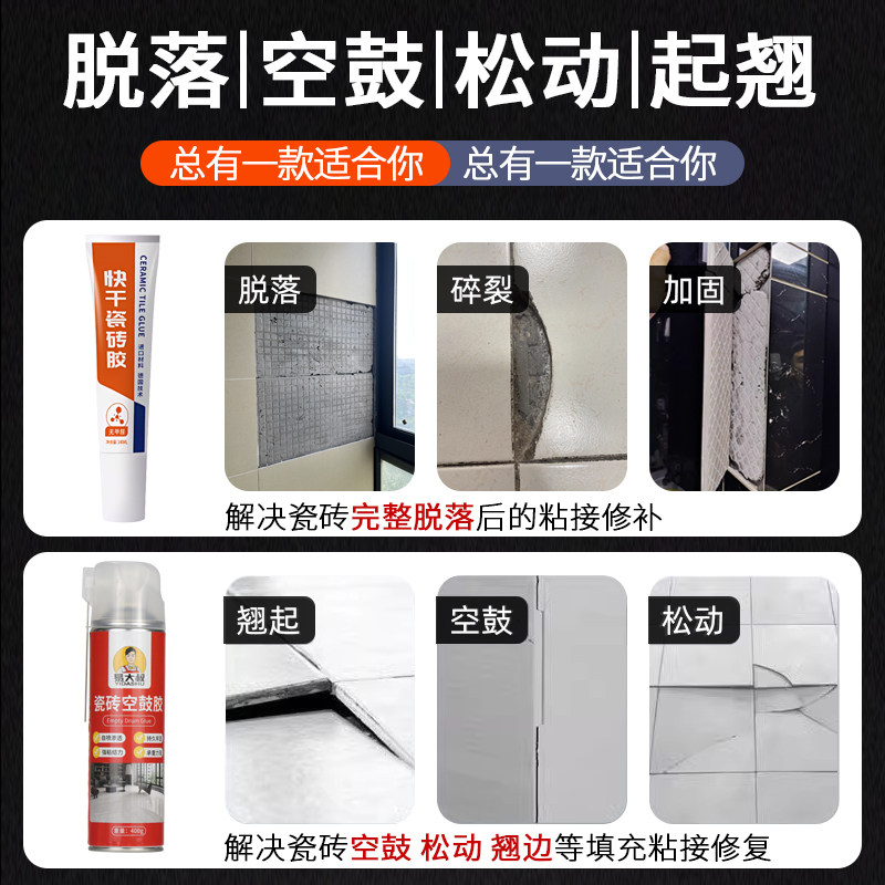 瓷砖胶强力粘合剂代替水泥高粘度防水墙地砖粘结空鼓修补专用背胶