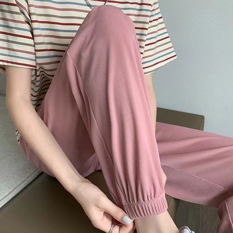 大码300斤冰丝休闲裤子男女夏季薄款宽松灯笼裤哈伦束脚运动长裤2
