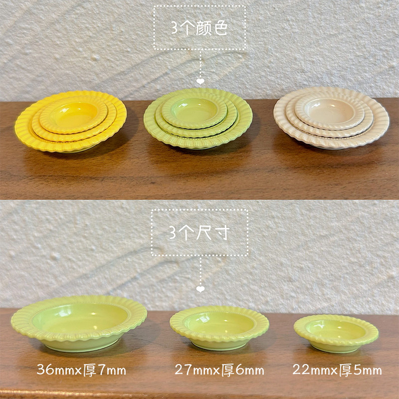 微缩场景深盘西餐盘娃娃屋配件迷你菜盘摆件玩具草帽盘模型D582