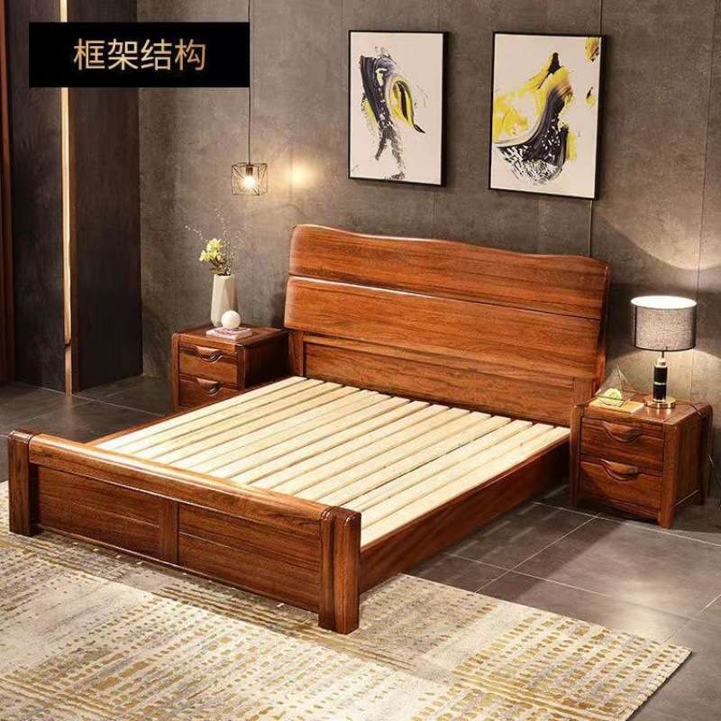 乌金木实木床1.8米双人大床卧室家用现代中式婚床简约主卧1.5米床