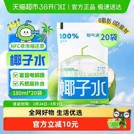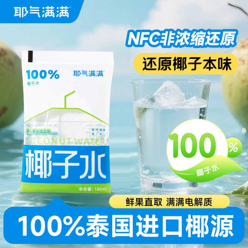 耶气满满椰子水180ml*20袋NFC天然电解质水非浓缩椰青水果汁饮料