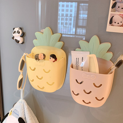 可爱菠萝壁挂式牙刷收纳盒家用浴室免打孔墙面置物架收纳筒宿舍