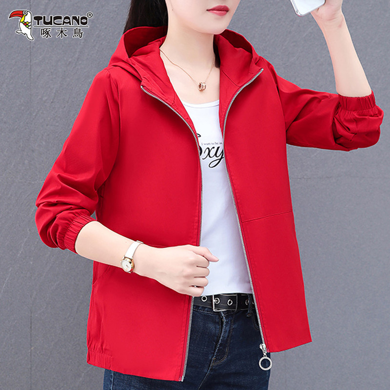 啄木鸟休闲短外套女春秋季2025年新款薄款冲锋衣连帽上衣秋冬夹克