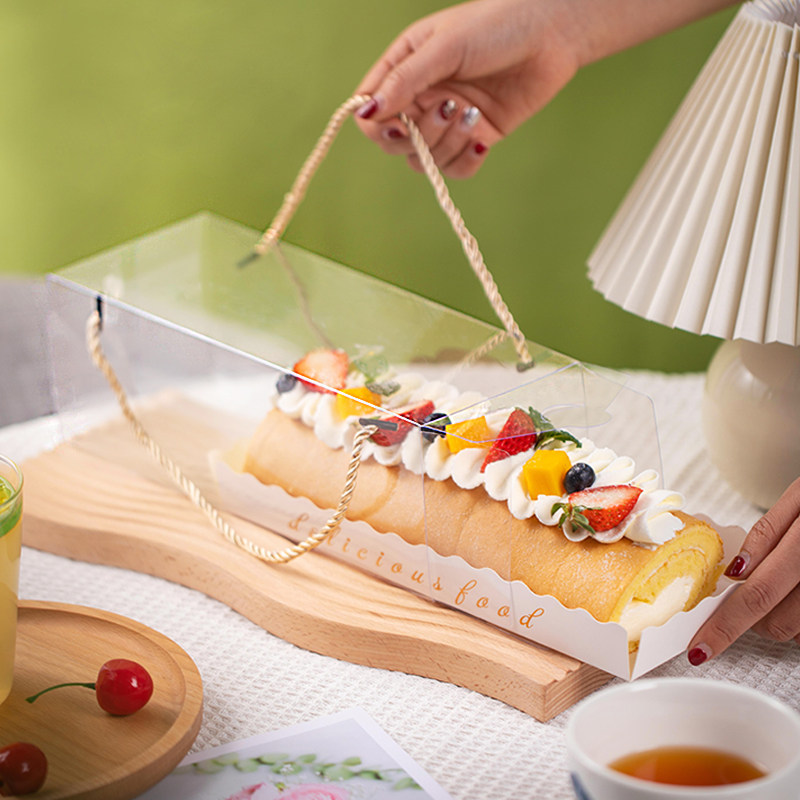 瑞士虎皮梦龙蛋糕卷包装盒整卷半卷手提毛巾卷慕斯蛋糕长条盒子