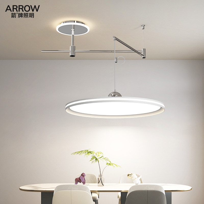 箭牌飞碟餐厅吊灯现代简约法式摇臂餐桌灯高级护眼全光谱饭厅灯具