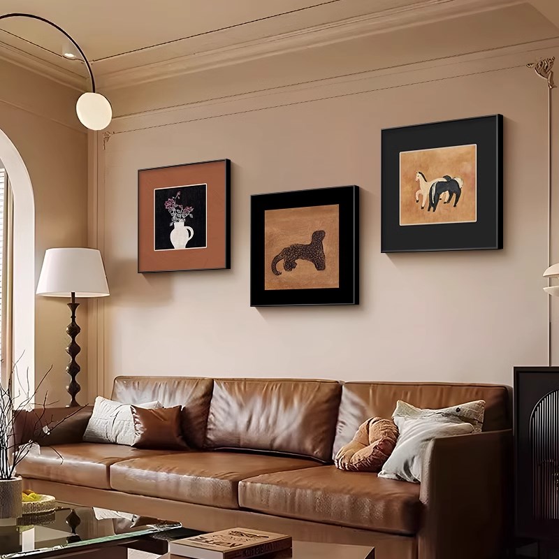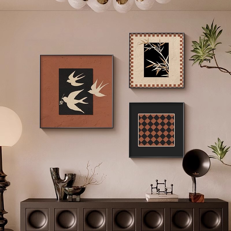 法式中古挂画客厅装饰画小众复古沙发背景墙壁画侘寂原木风餐厅画