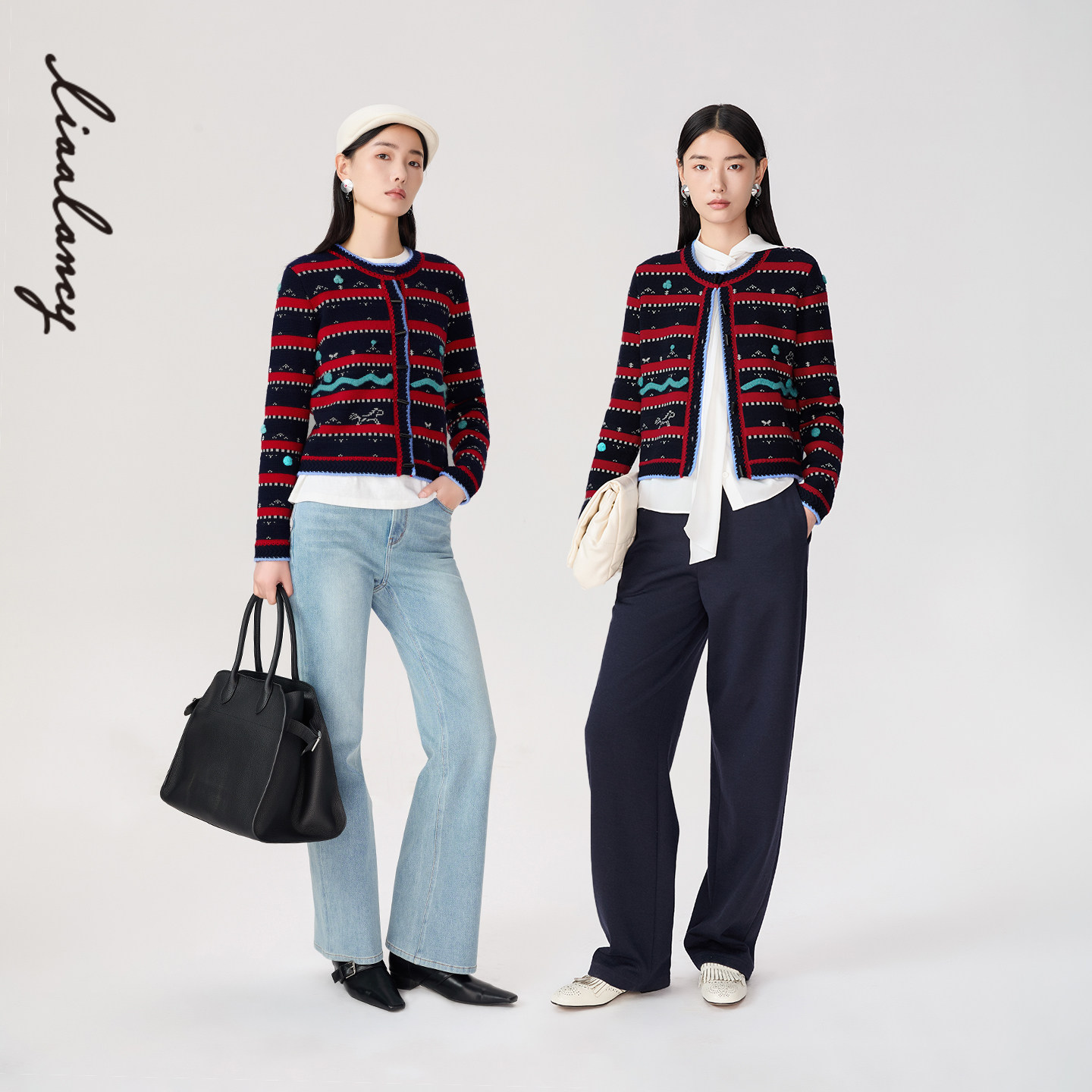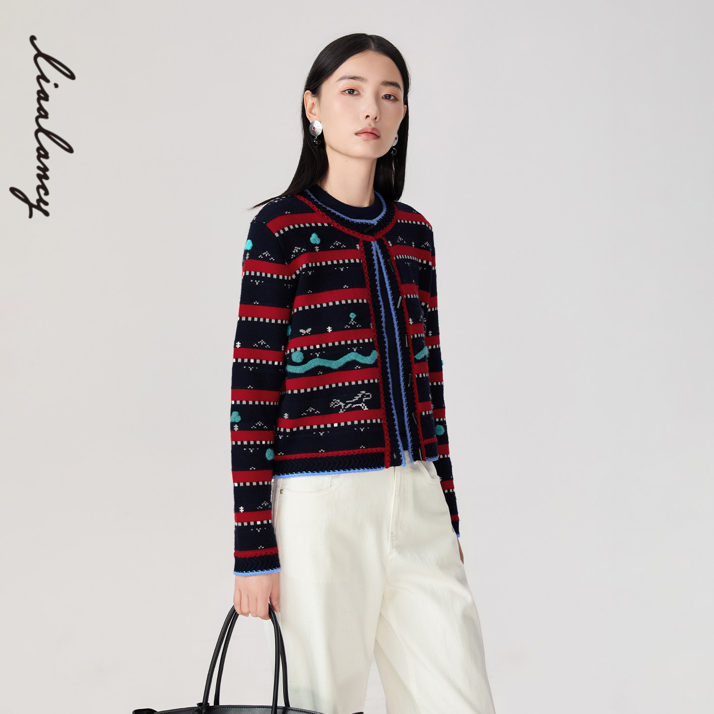 【宋佳同款丨马踏春风】LANCY/朗姿2026春新款羊毛羊绒针织开衫女