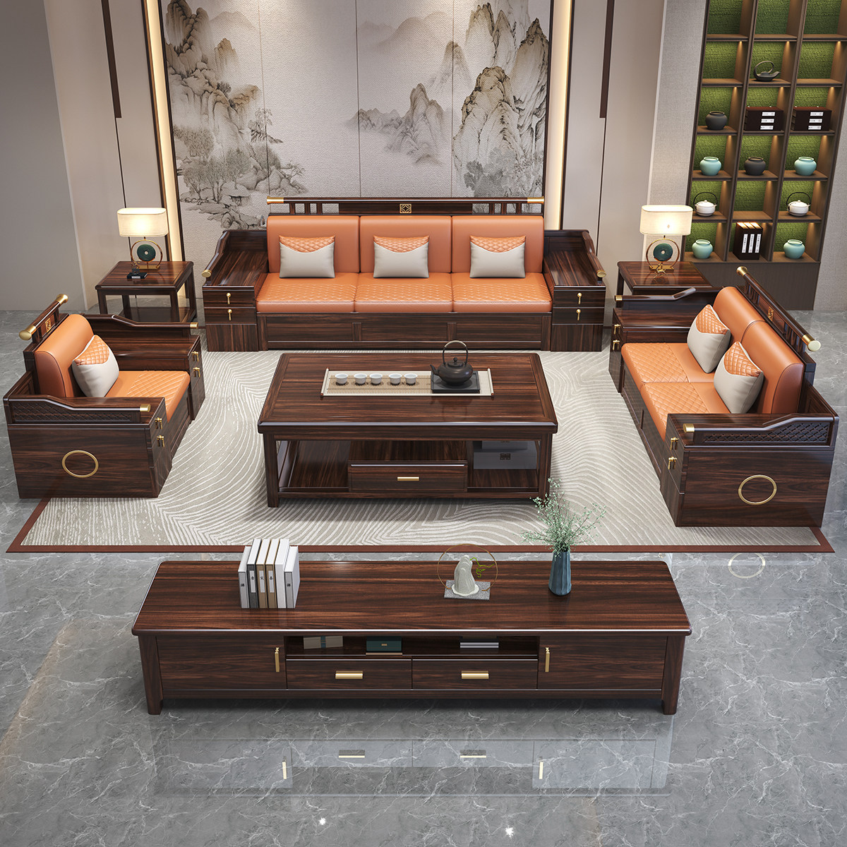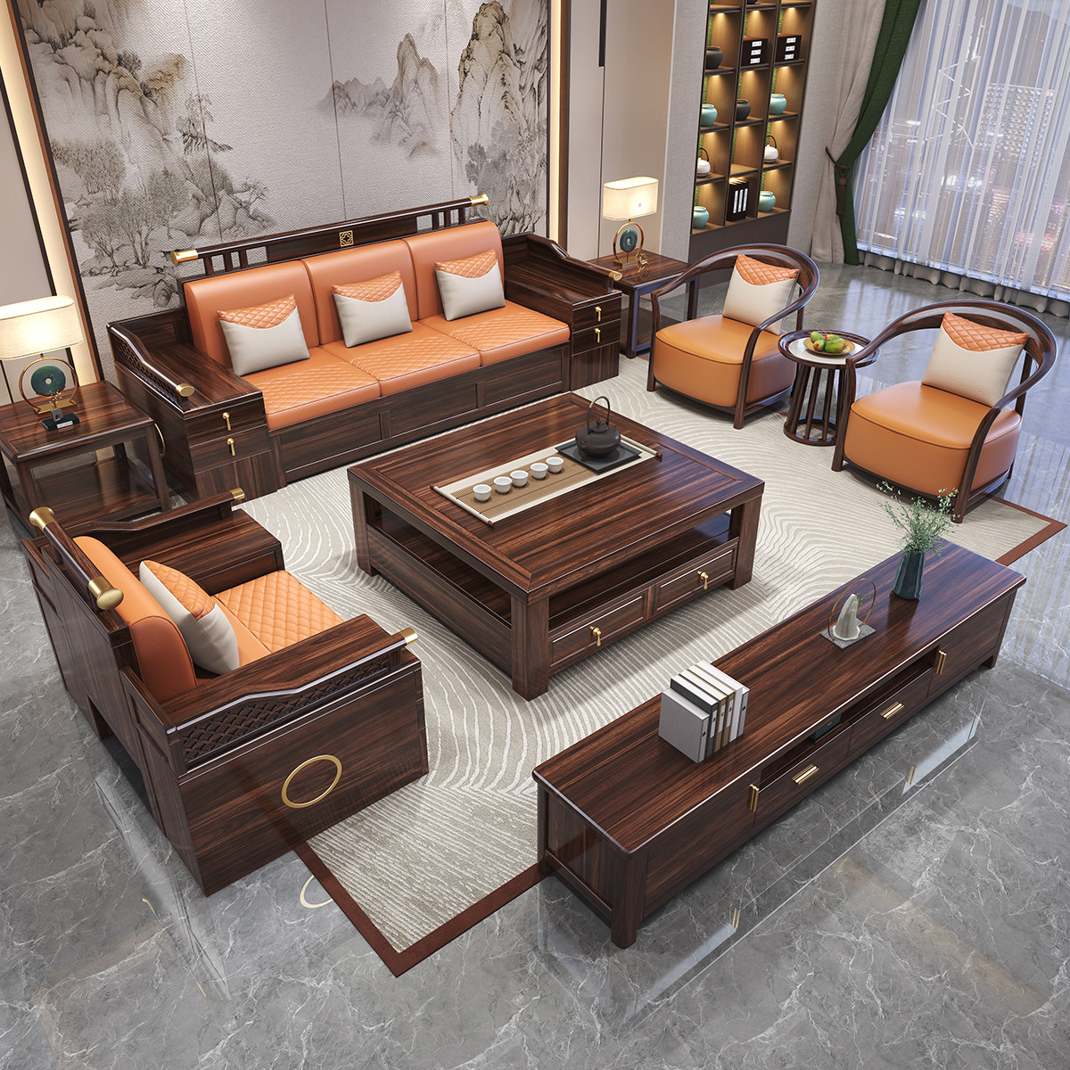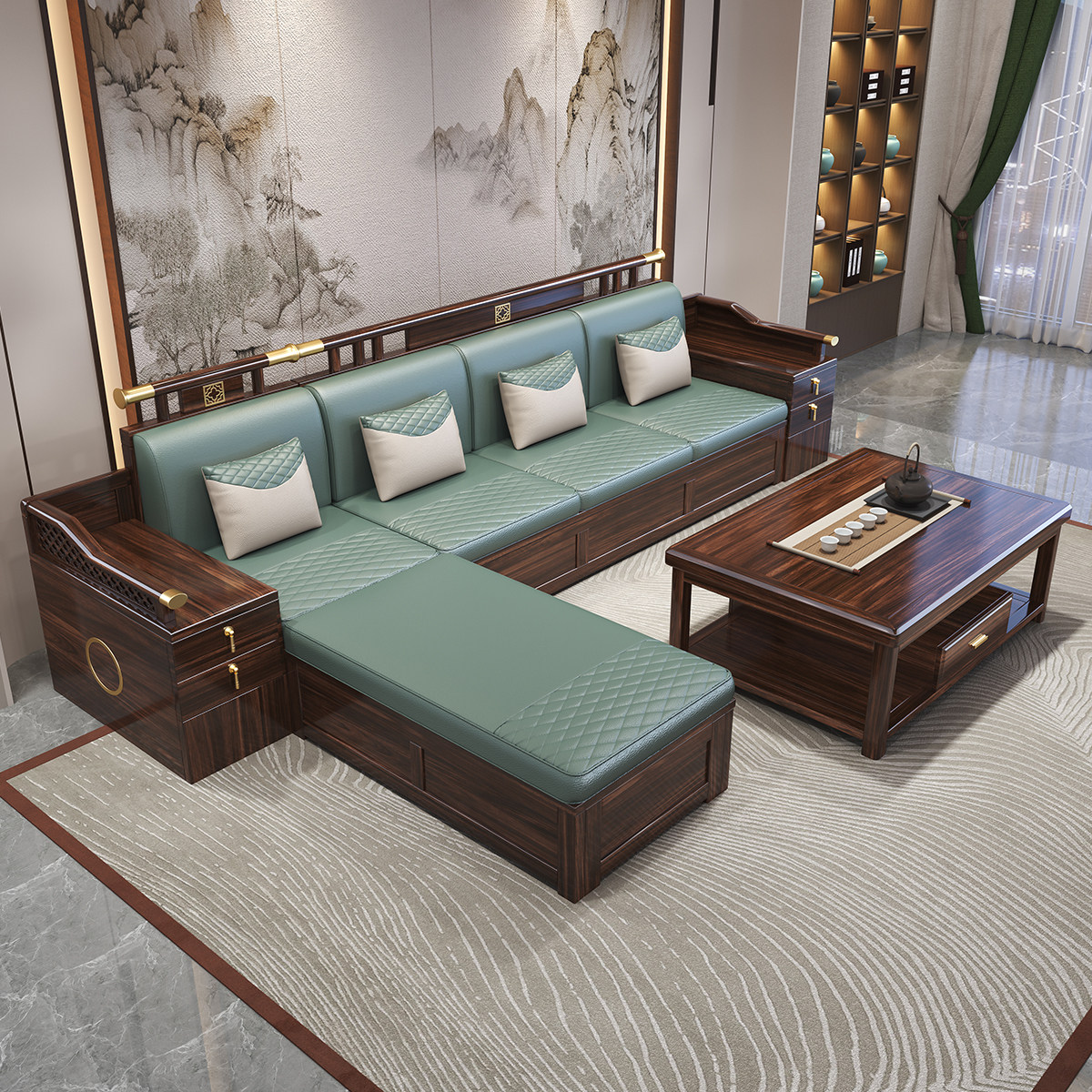 新中式乌金木实木沙发别墅客厅高档全实木冬夏两用贵妃转角木沙发