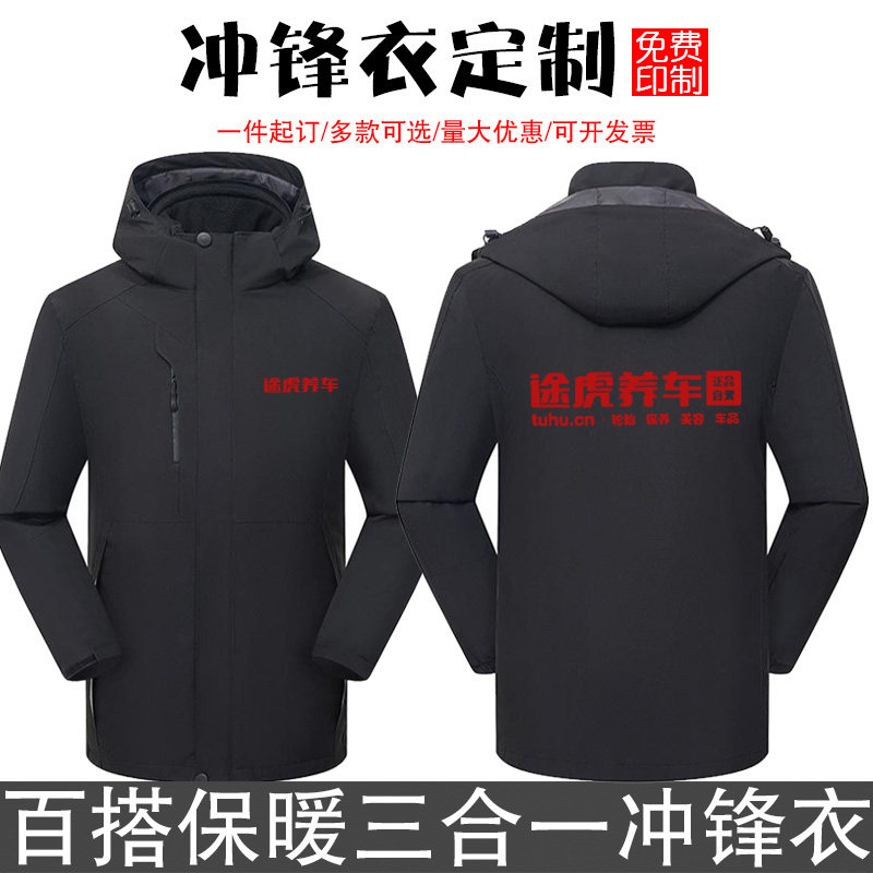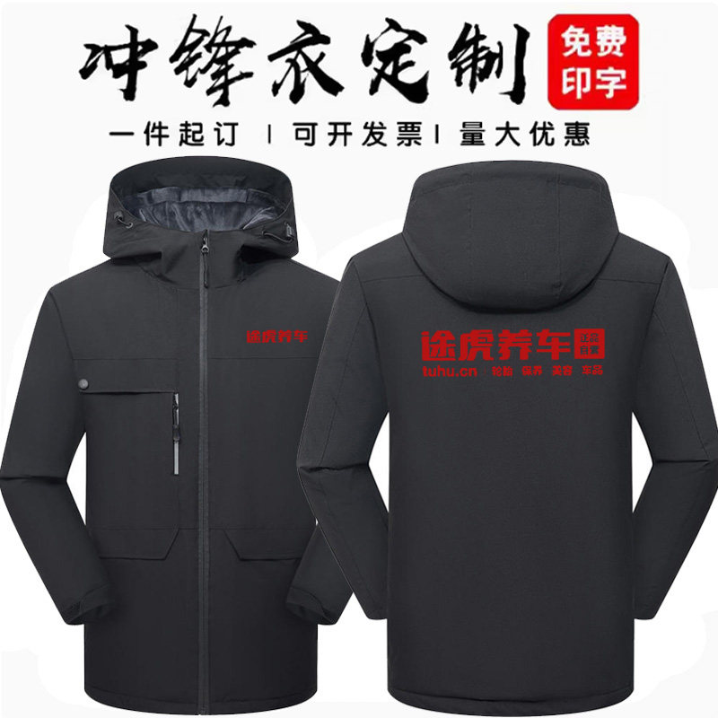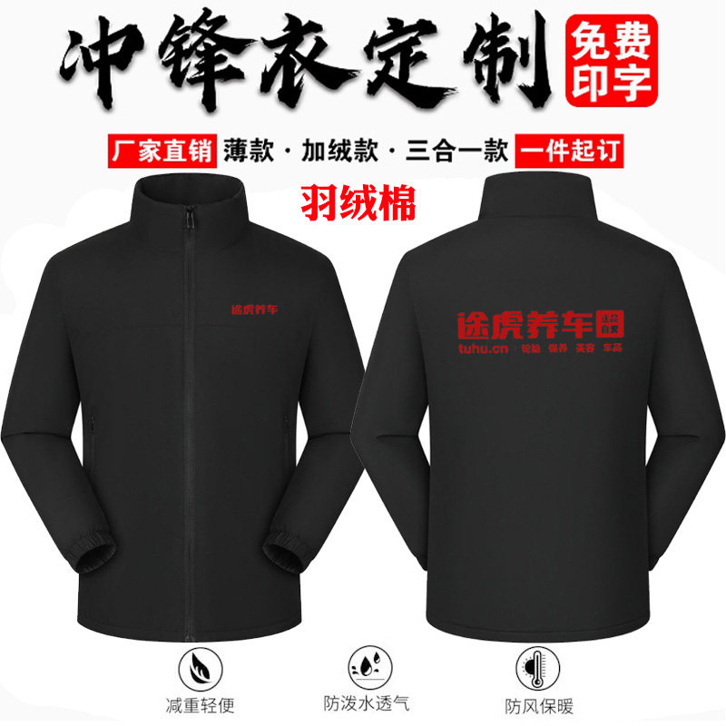 途虎养车冲锋衣定制工作服维修保养秋冬夹克保暖棉服工装外套logo