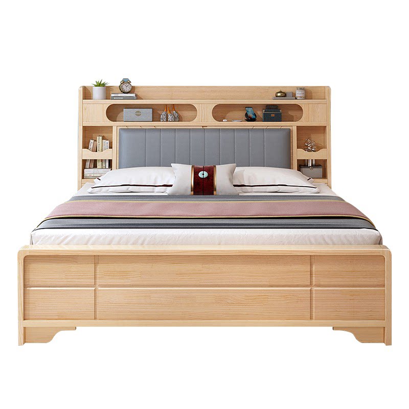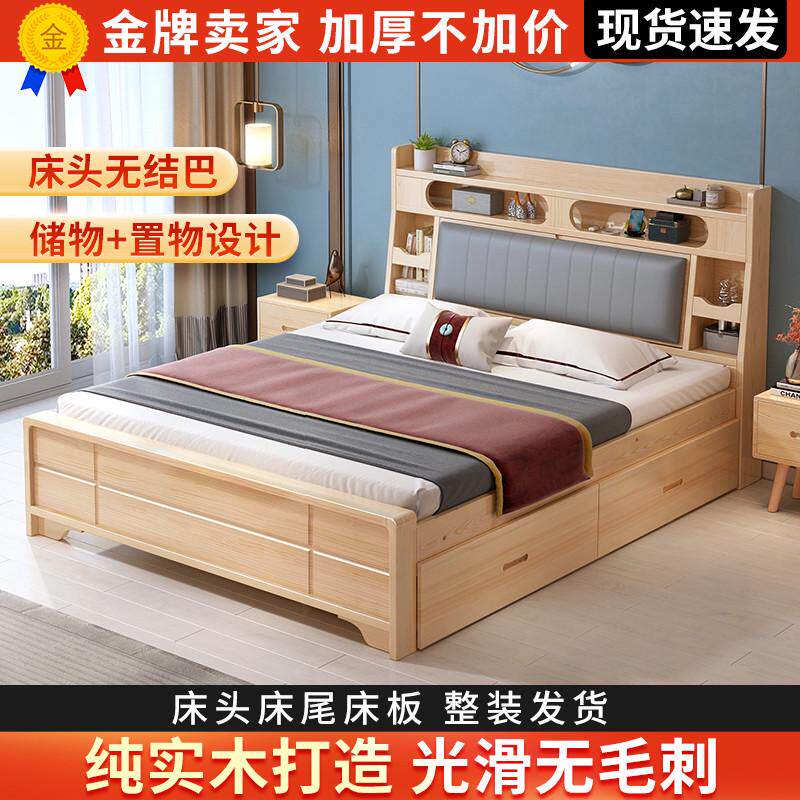 实木床1 8米1 5米单双人床现代简约主卧宾馆出租房专用新中式婚床