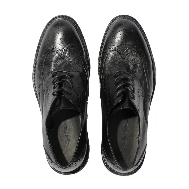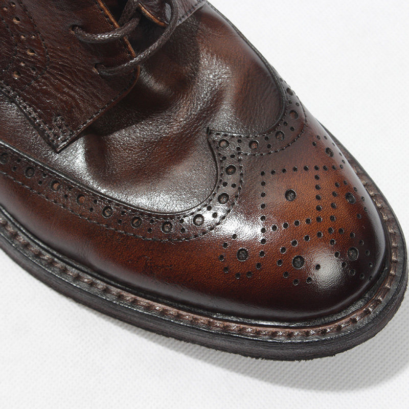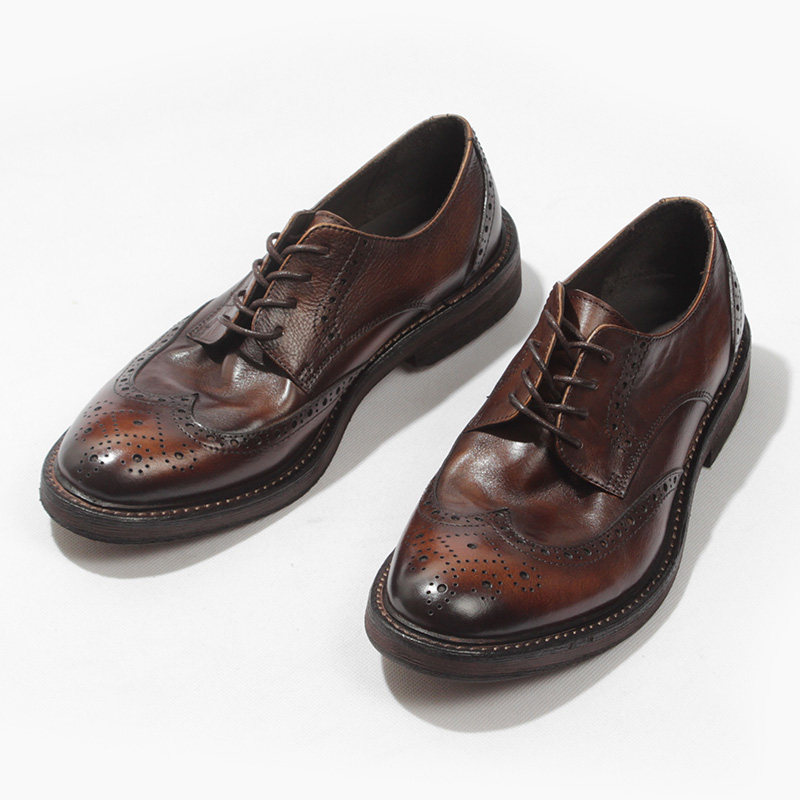 欧美复古布洛克休闲皮鞋男真皮手工做旧雕花潮流鞋尖头系带商务鞋