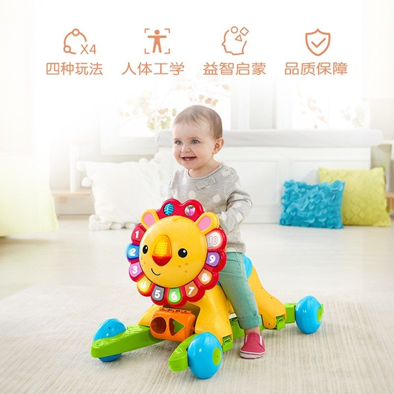 费雪4合1摇摇小狮子儿童学步车多功能防侧翻宝宝手推车助步玩具