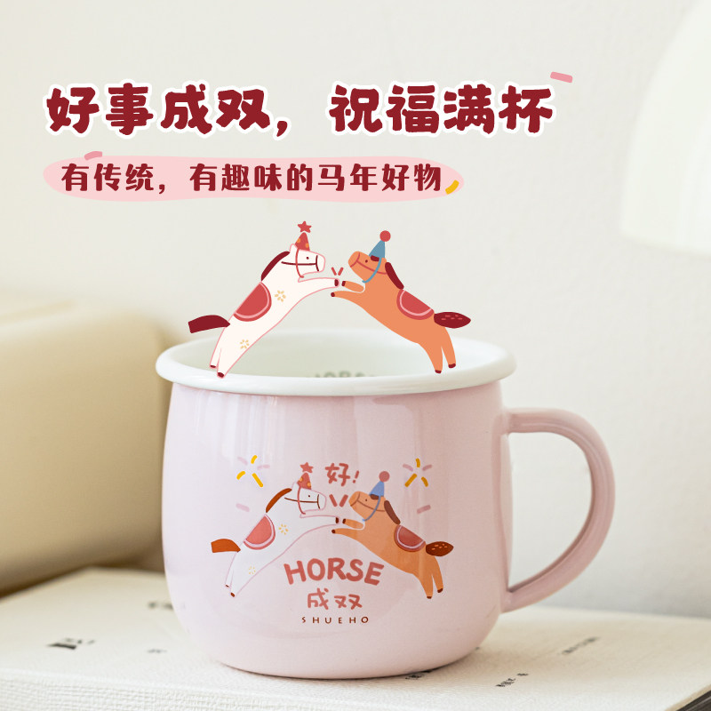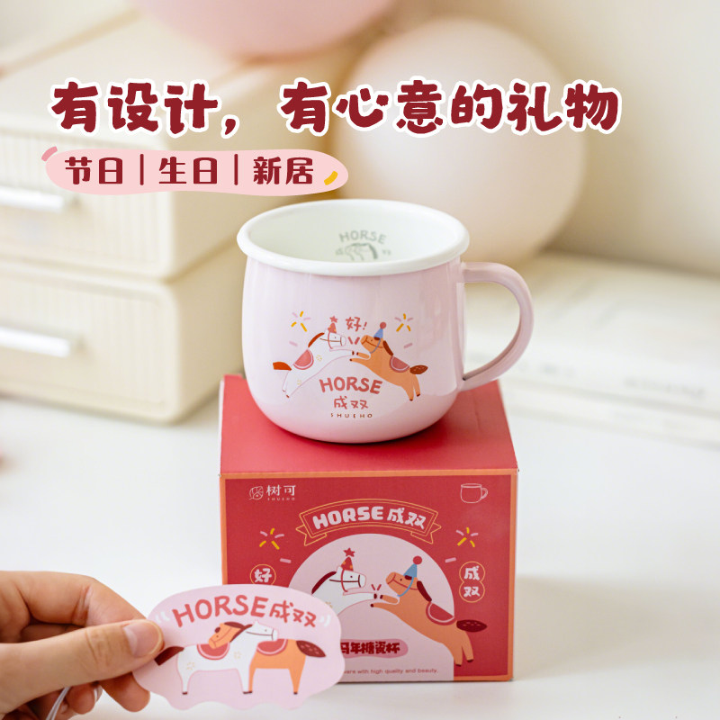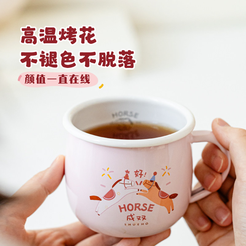 树可马年搪瓷马克杯喝水家用高颜值儿童冲泡红色可爱超好看的杯子
