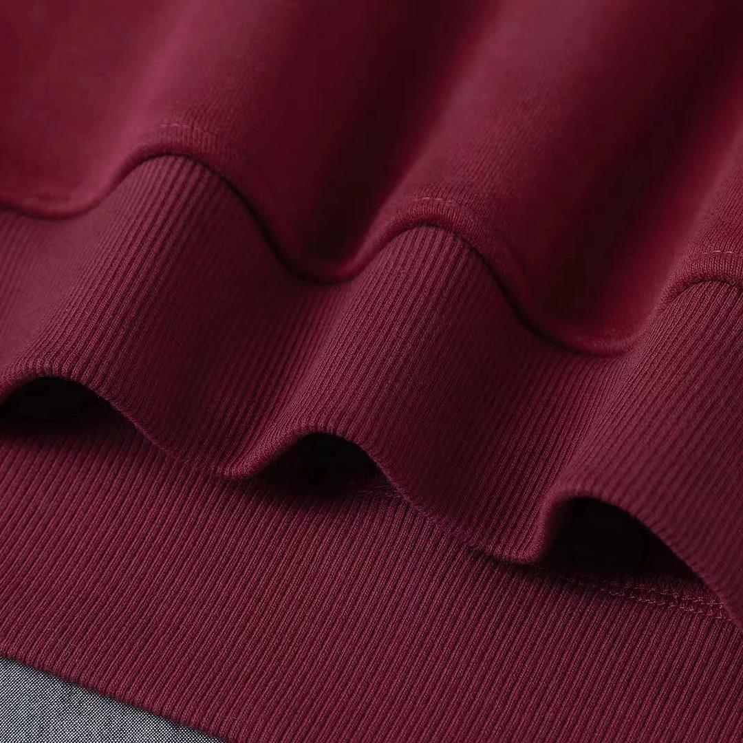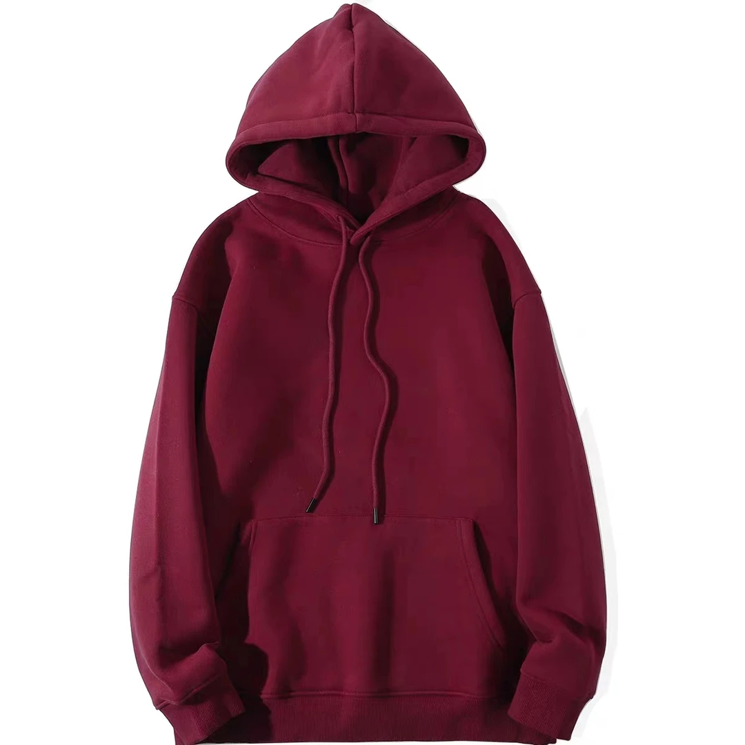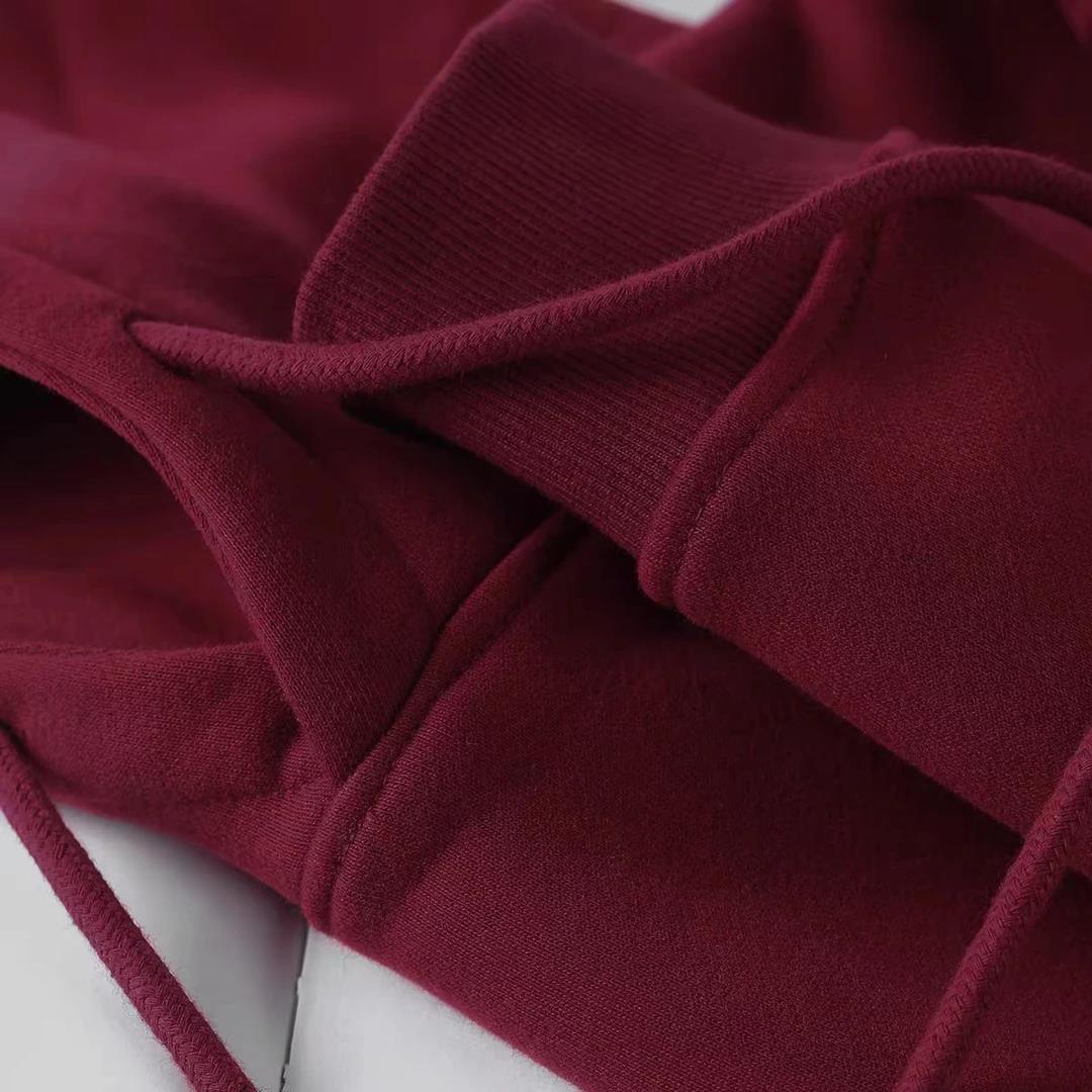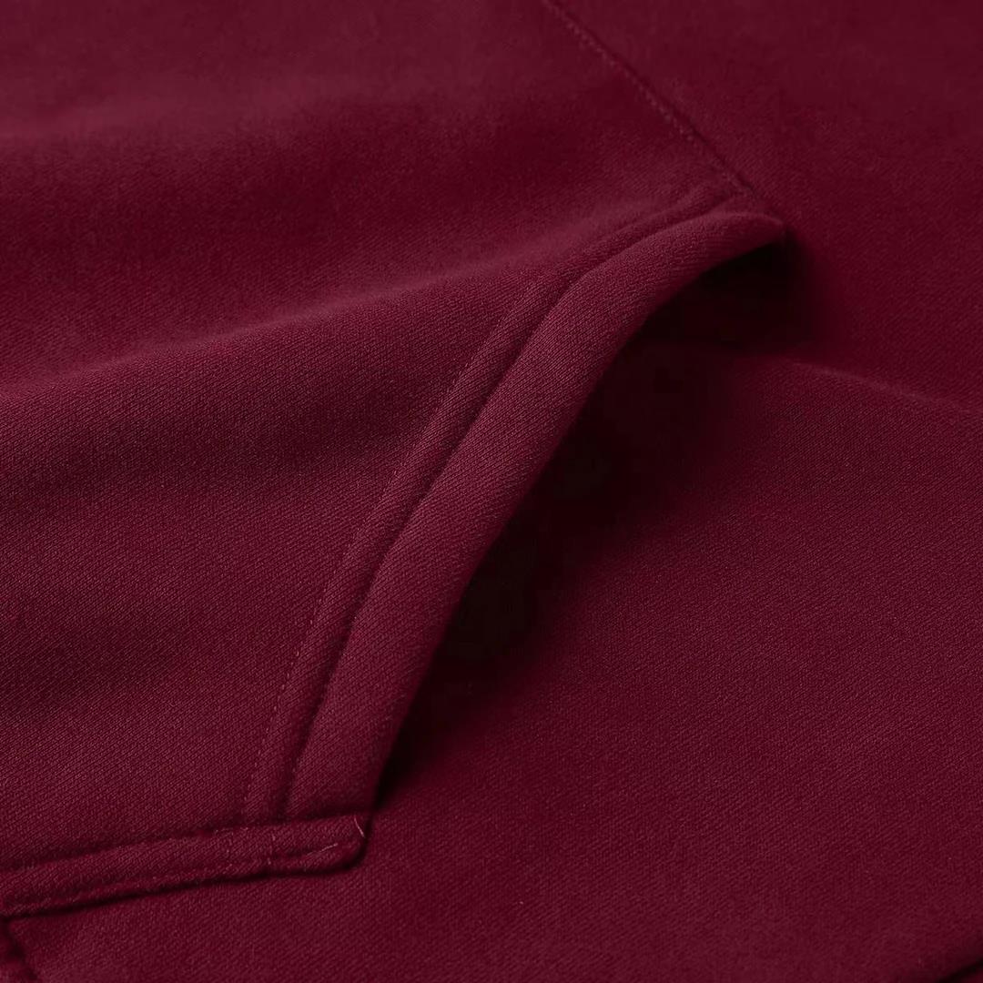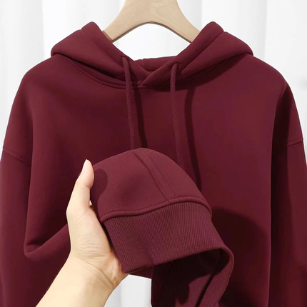 显白酒红色350g重磅连帽卫衣男秋冬款美式复古宽松纯色简约上衣女