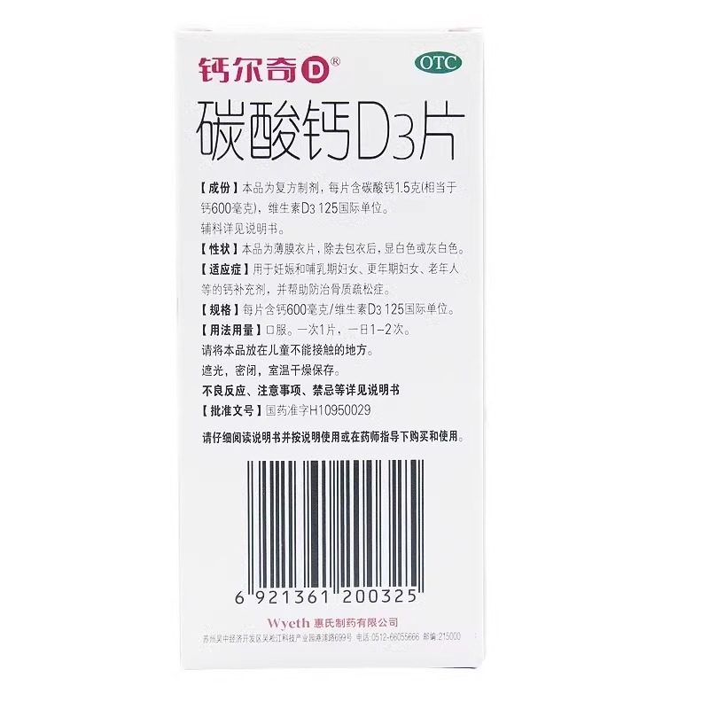 【钙尔奇】碳酸钙D3片600mg125IU*100片/盒