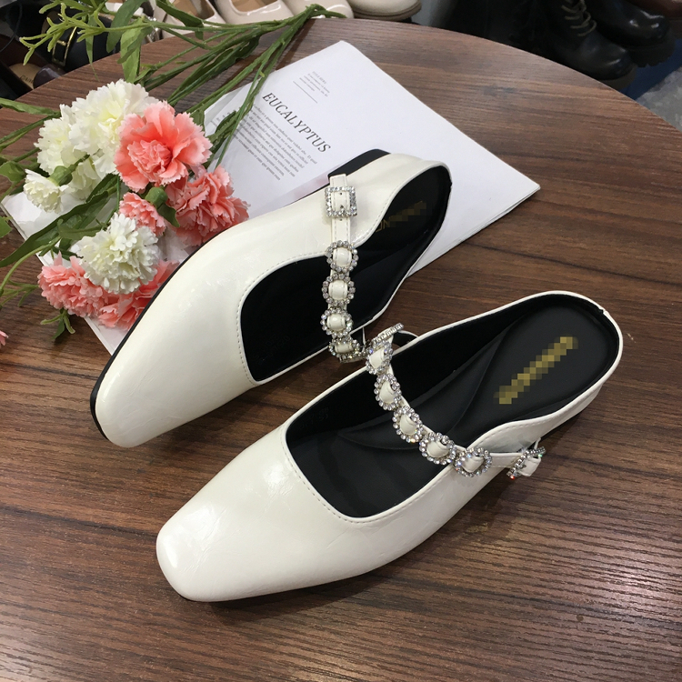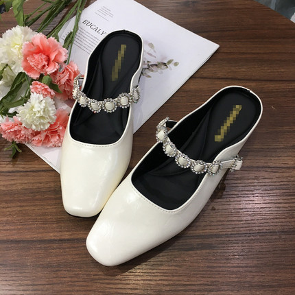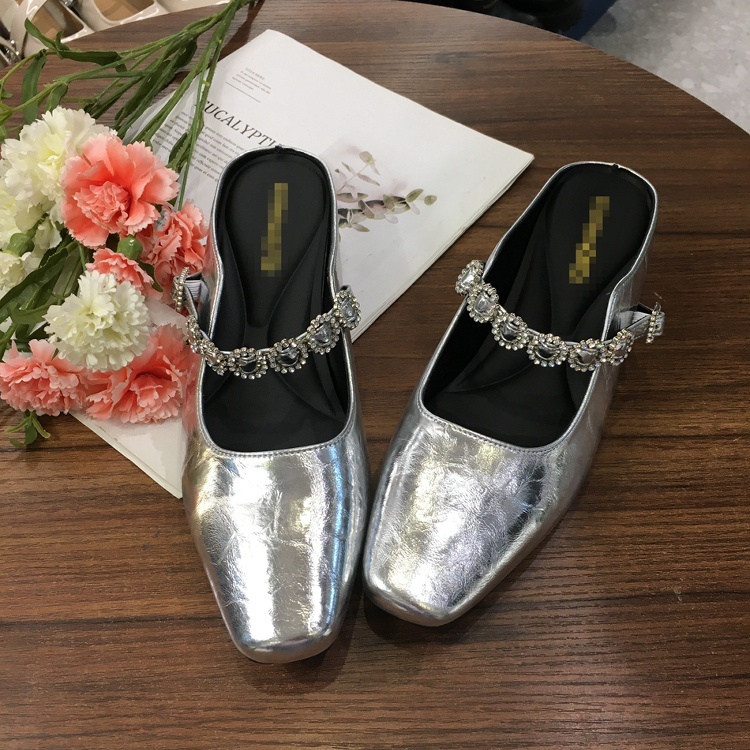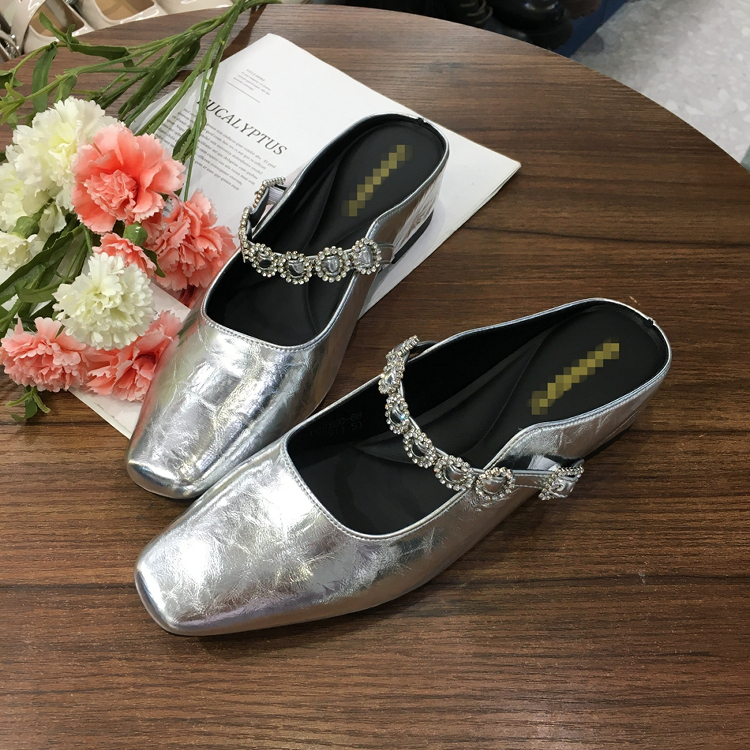 真皮水钻包头半拖鞋法式单鞋女鞋