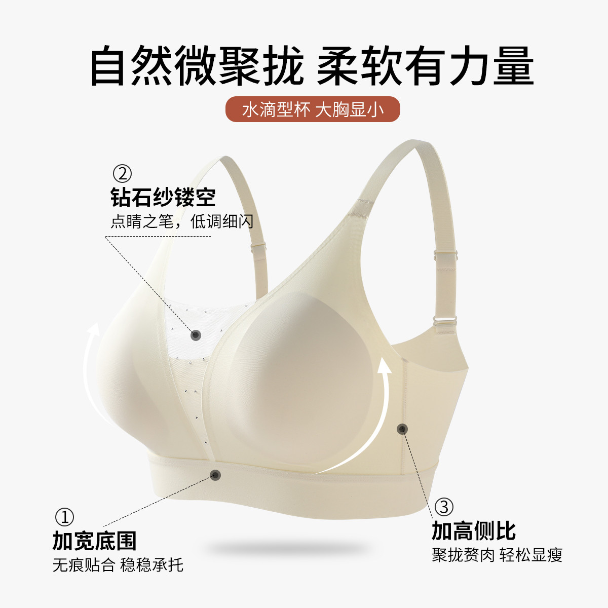 六月玫瑰 大胸显小无钢圈深V网纱性感文胸女夏季薄款无痕聚拢内衣