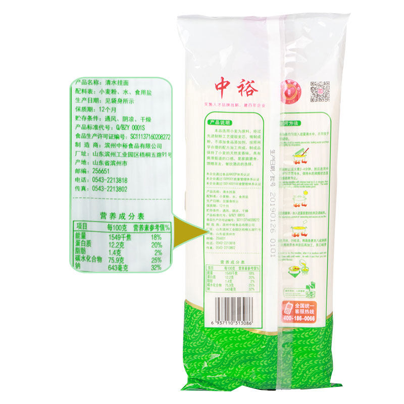 中裕清水挂面500g*30方便速食