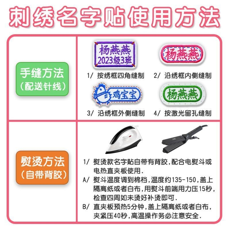 名字贴幼儿园姓名贴可缝可烫宝宝校服刺绣名字儿童衣贴可定制统一