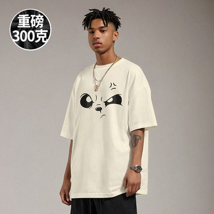 300g重磅潮牌白色短袖宽松胖子T恤纯棉情侣加肥加大码男装夏季潮