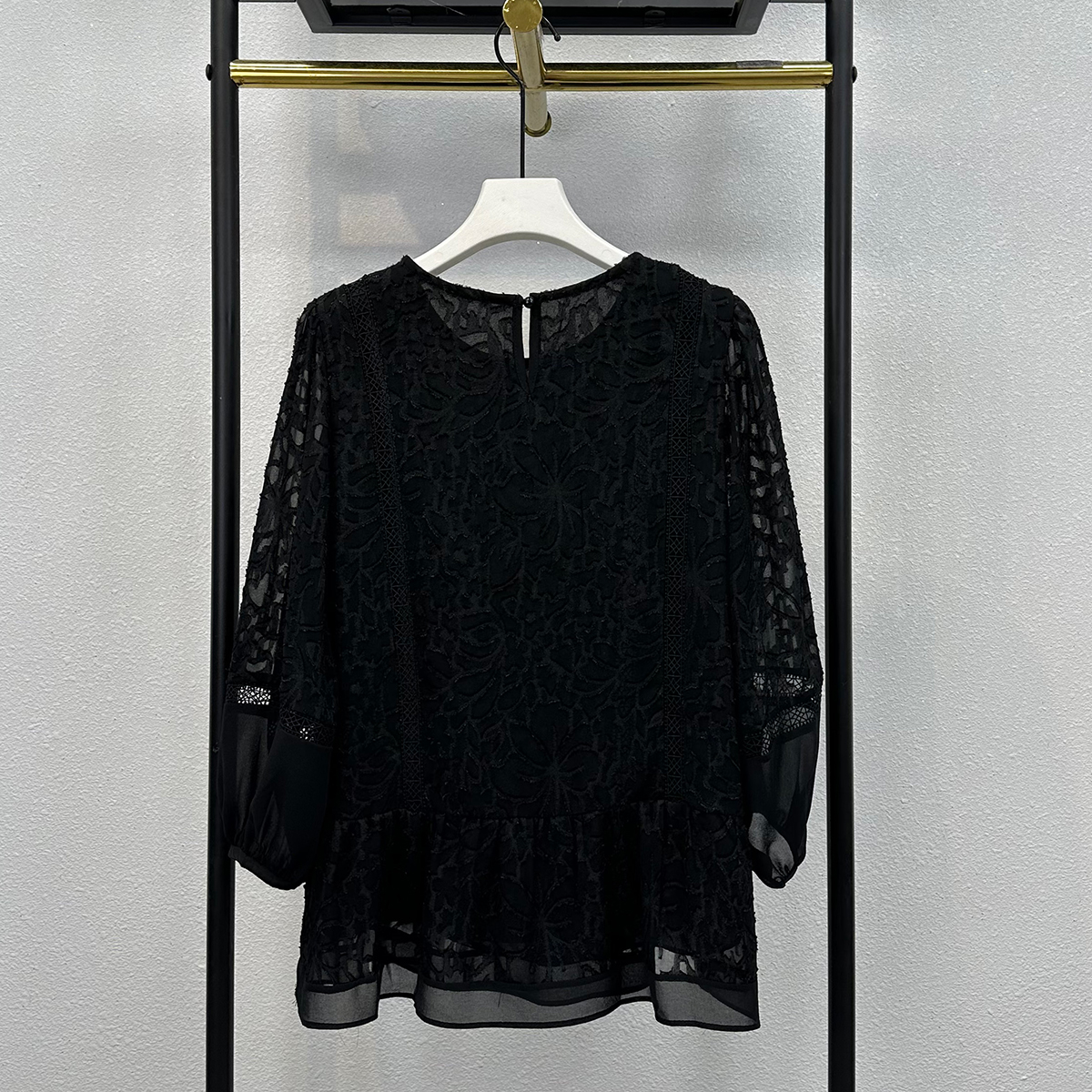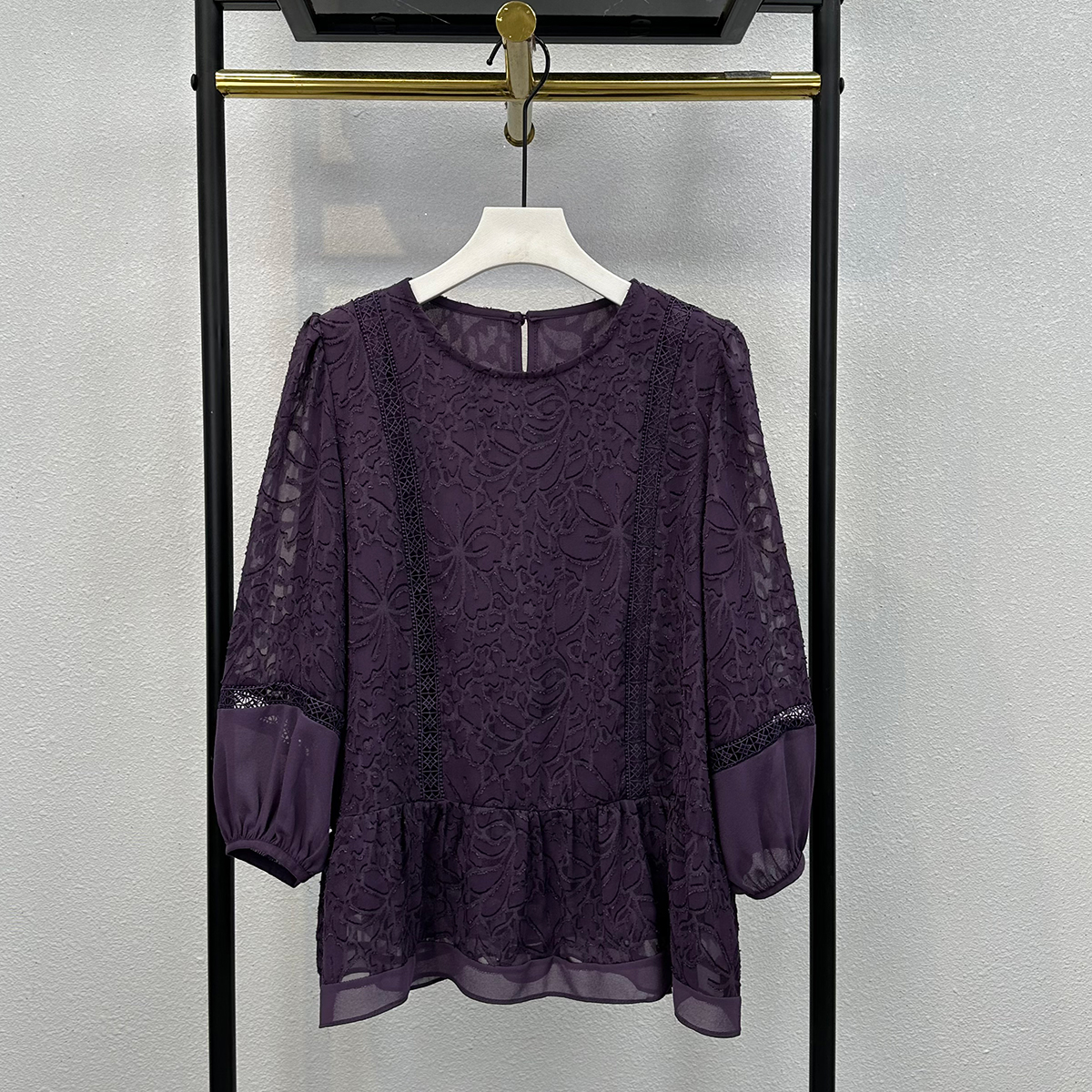 阔太太减龄洋气妈妈装真丝衬衫女2025新款春夏蕾丝宽松显瘦小衫