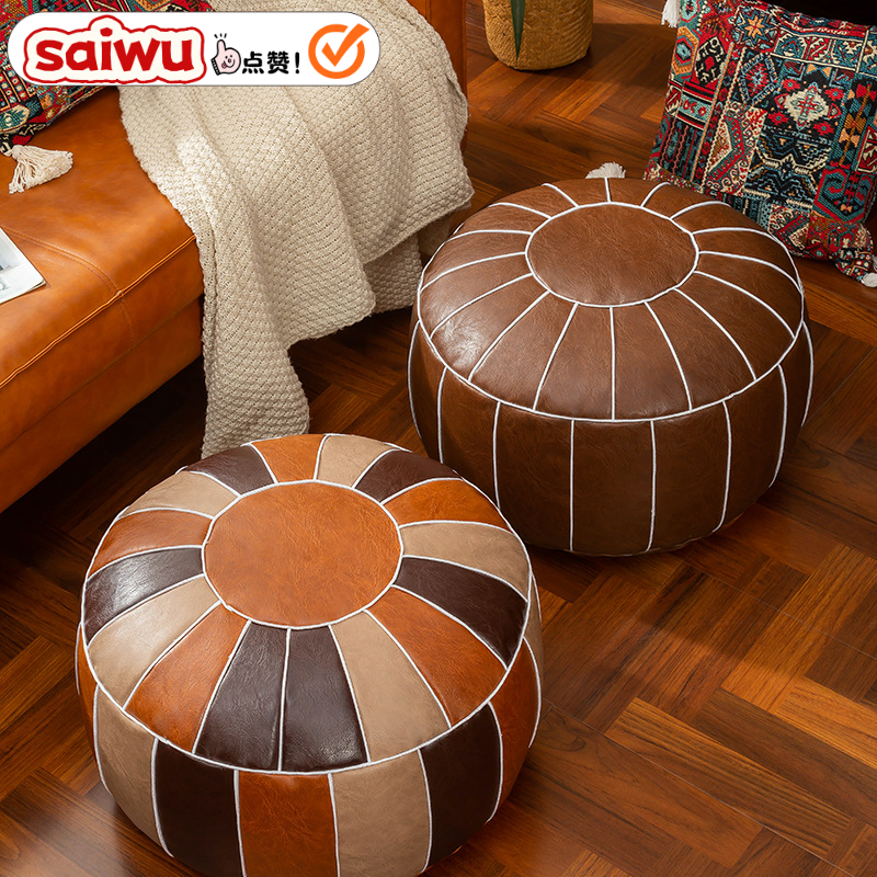 新款 摩洛哥风格坐垫油蜡皮坐墩简约地上坐垫美式复古坐垫免洗坐