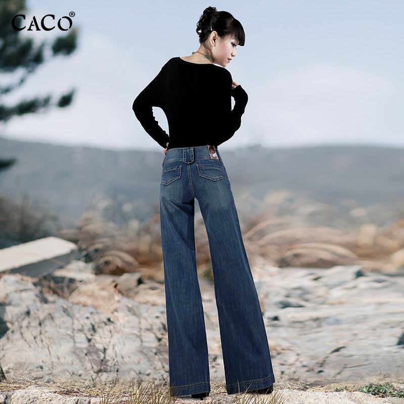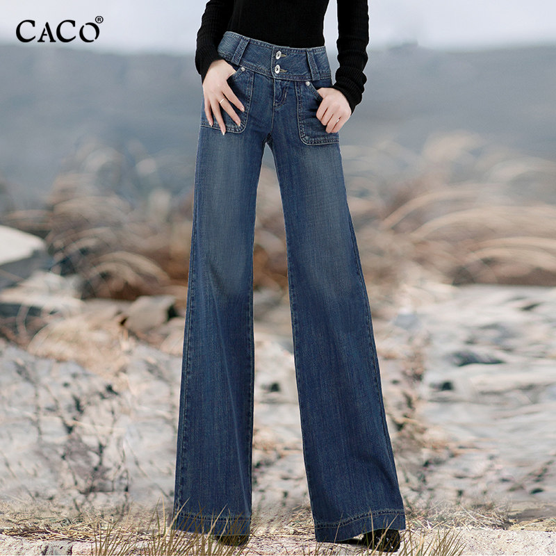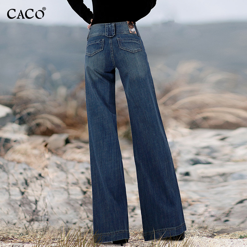 牛仔裤大脚裤宽松直筒高腰加长裤