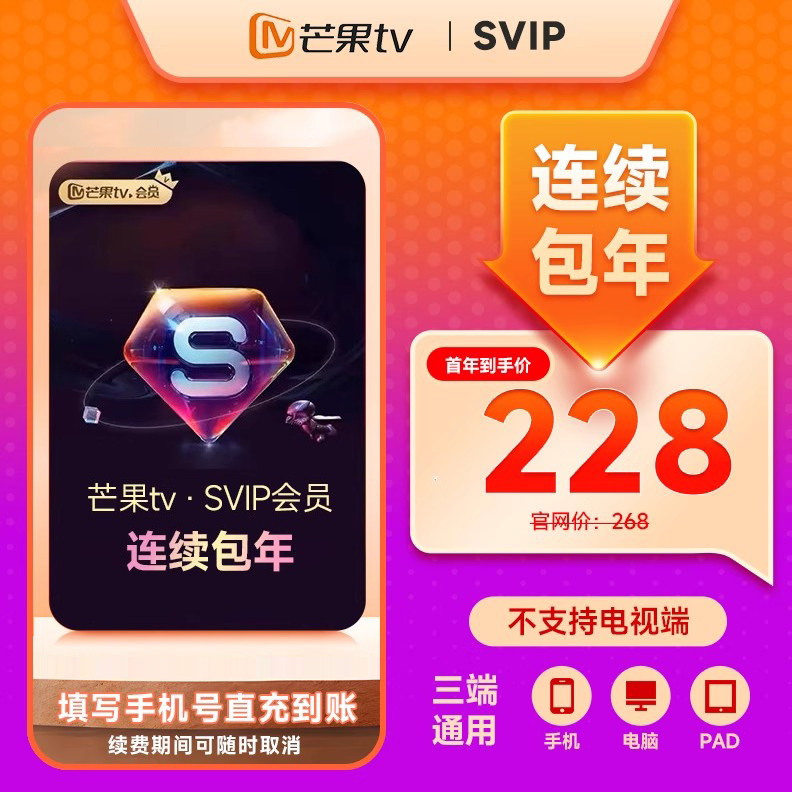 【SVIP连续包年】芒果TV SVIP会员年卡 SVIP 12个月 不支持电视