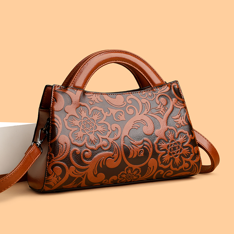 高级感轻奢真皮手提包女2025新款时尚立体压花牛皮大容量斜挎女包