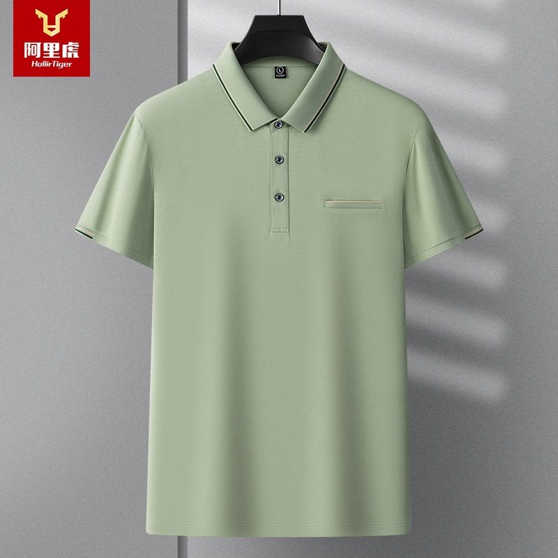 爸爸父亲节夏装短袖t恤莱赛尔天丝棉真口袋纯色宽松翻领polo衫男