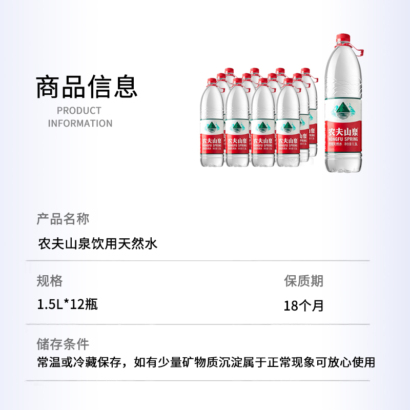 农夫山泉矿泉水1.5L*12瓶整箱包邮批特价天然饮用水大瓶装1500ml