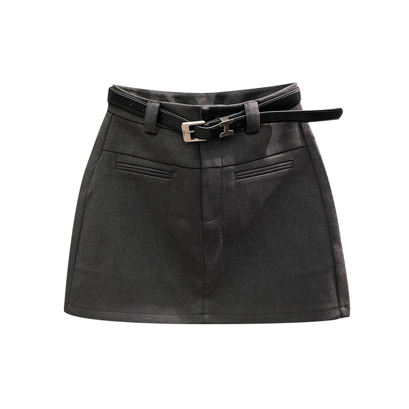 高腰西装料休闲短裙女装秋冬时尚减龄百搭显瘦A字打底半身包臀裙