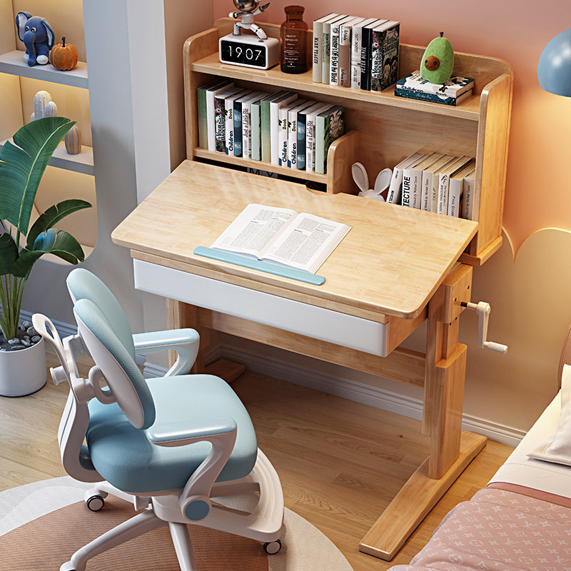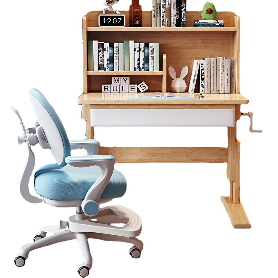 儿童学习桌家用小学生写字桌椅套装可升降课桌男女孩卧室实木书桌