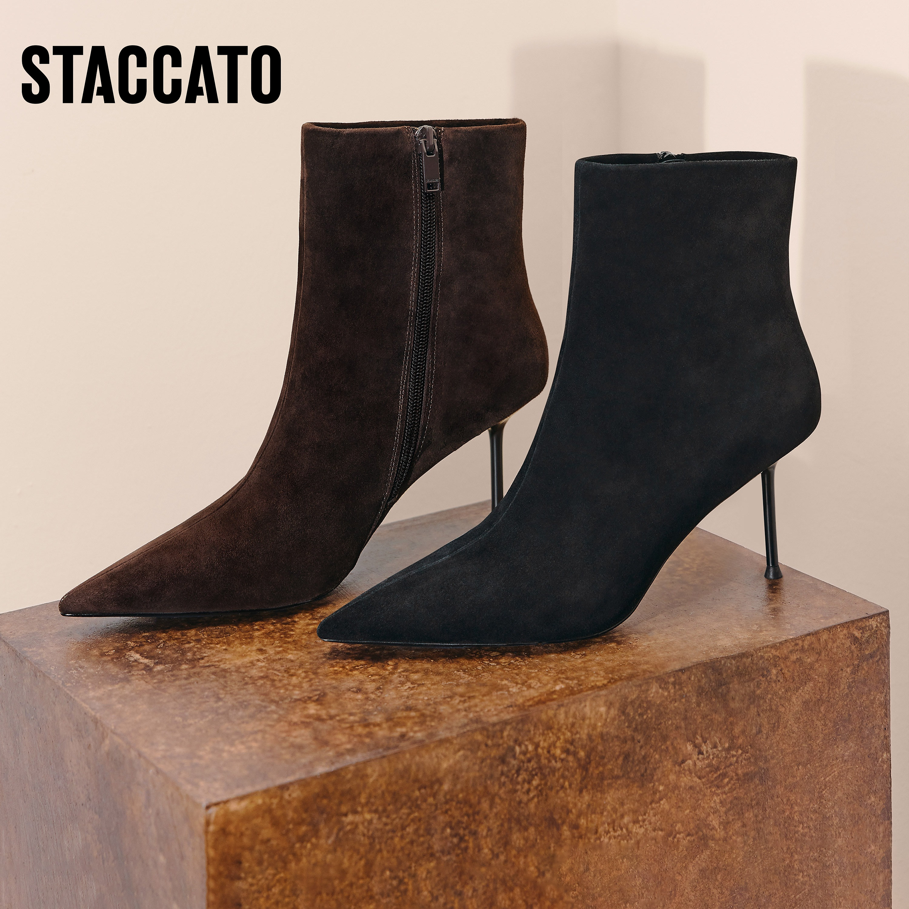 思加图新款气质通勤复古时装靴短靴高跟鞋黑色细跟女靴子H8058DD5