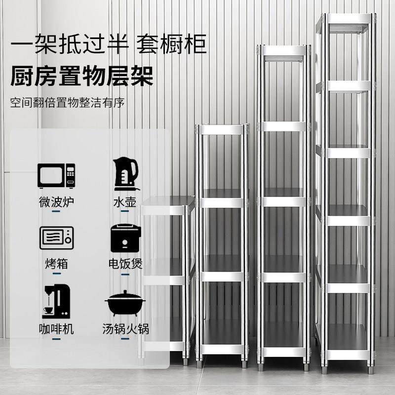 不锈钢厨房置物架落地多层小架子家用储物货架锅架微波炉烤箱收纳