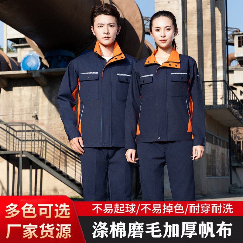 春秋劳保工作服涤棉磨毛帆布套装