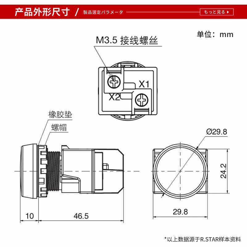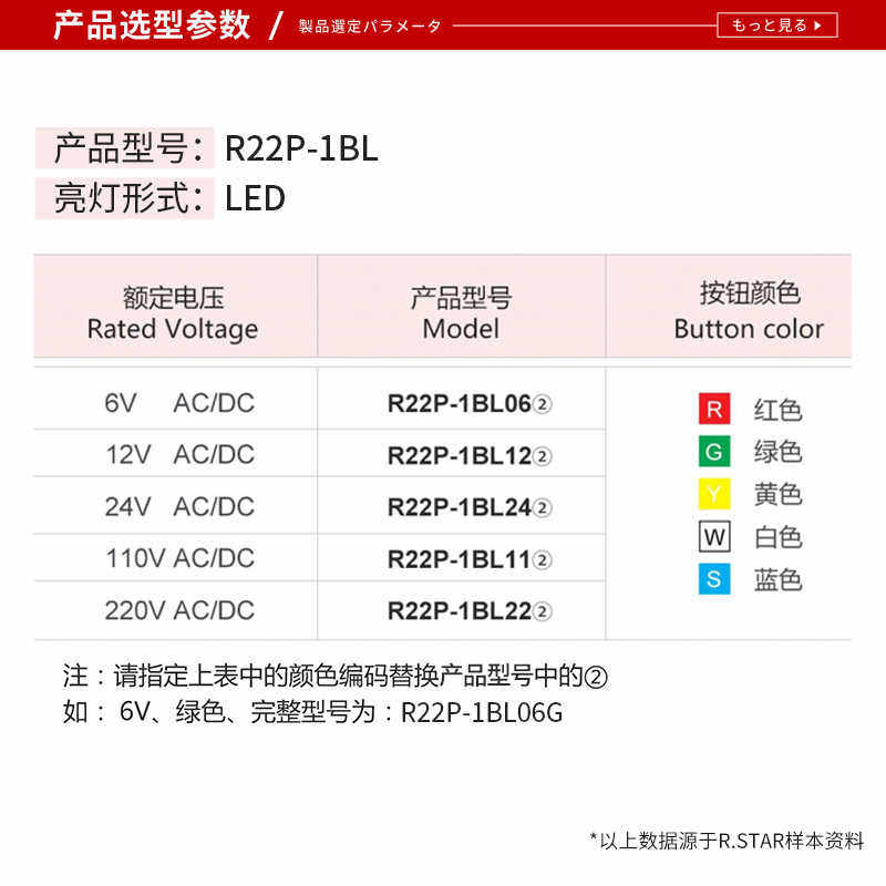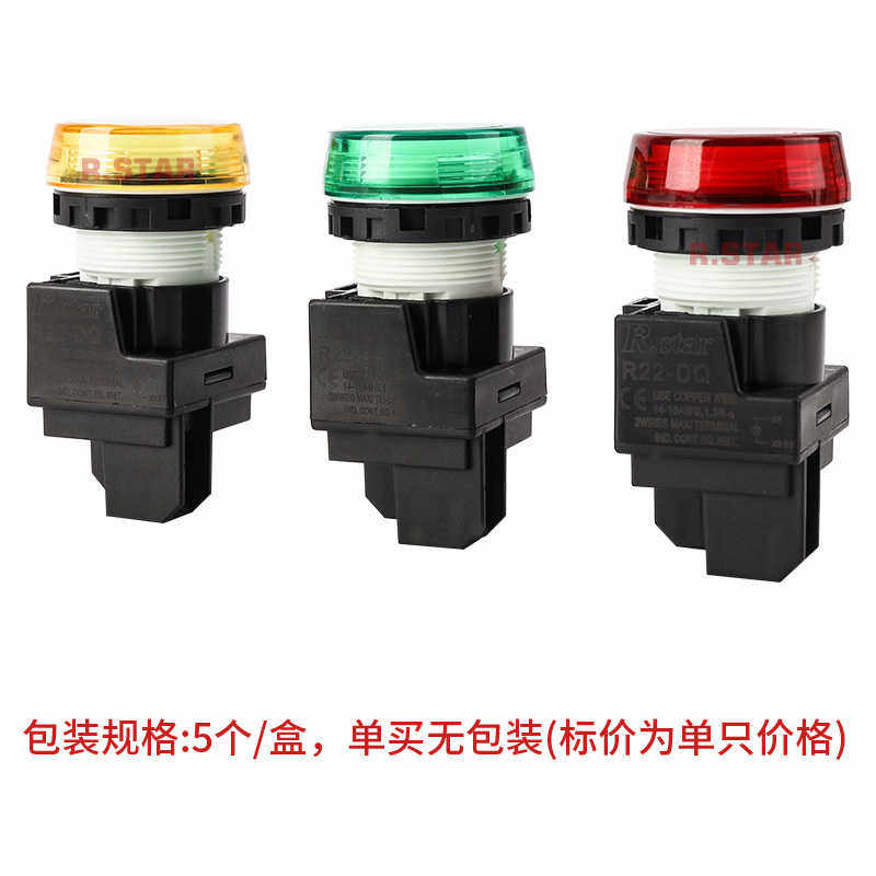 R.STAR电源指示灯220v 通用22mm信号灯led圆形平头指示灯24v 110v