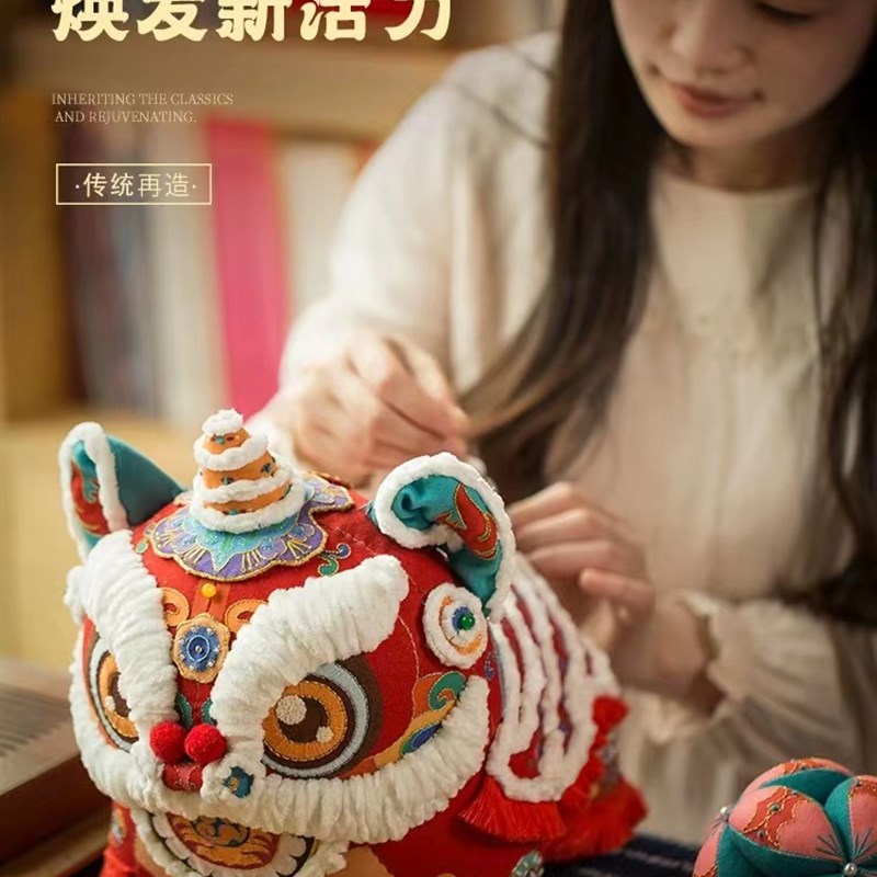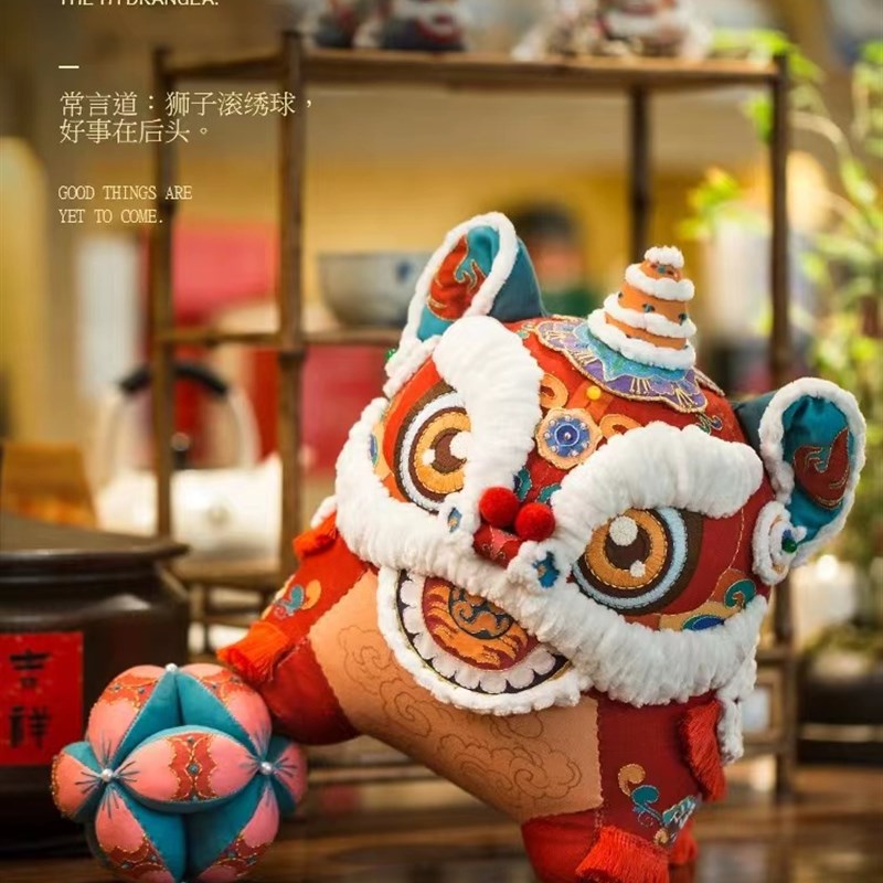 阿卡手工刺绣diy成品中国风大狮子平安符立体玩偶摆件节日礼物