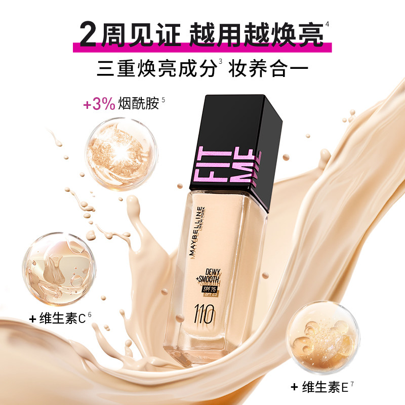 美宝莲fitme粉底液控油遮瑕哑光