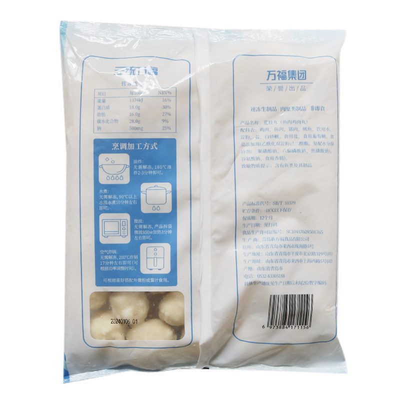 三统万福花枝丸 1kg/袋 有弹性墨鱼丸火锅关东煮冒菜油炸烧烤小吃