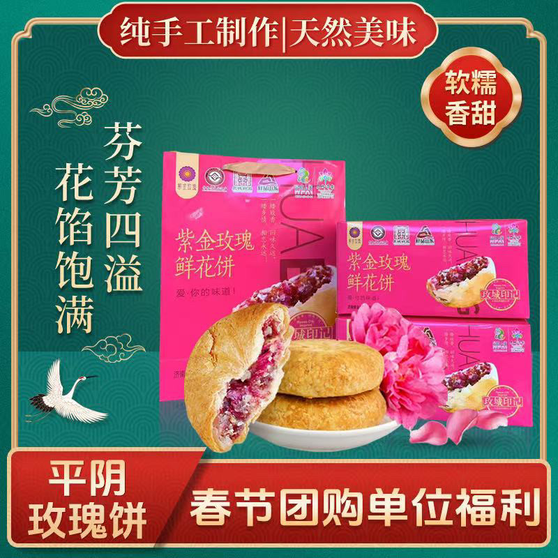 济南平阴紫金玫瑰鲜花饼月饼特产传统糕点休闲零食小吃节日礼盒