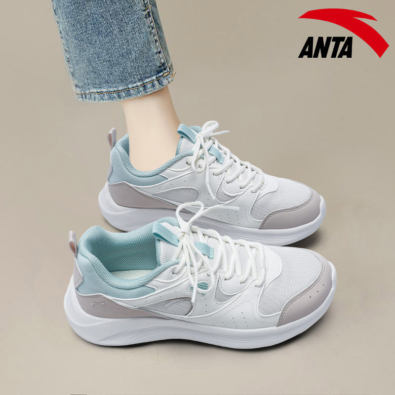 安踏网面跑步鞋女鞋复古软底休闲轻质旅游鞋2025秋季透气运动鞋女