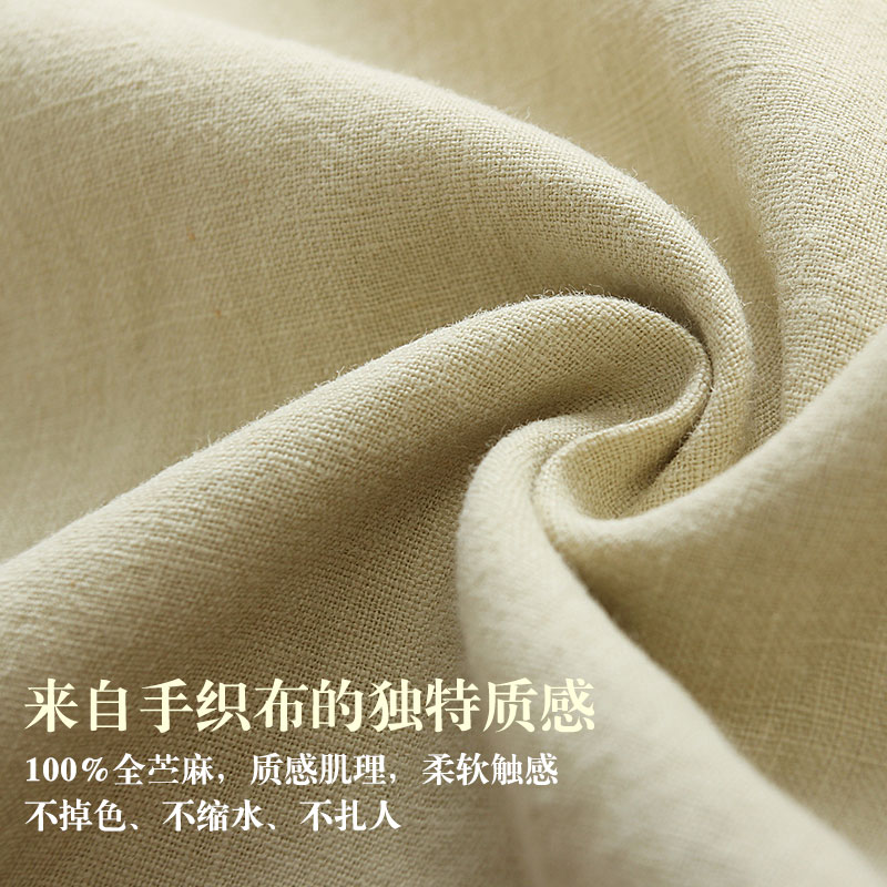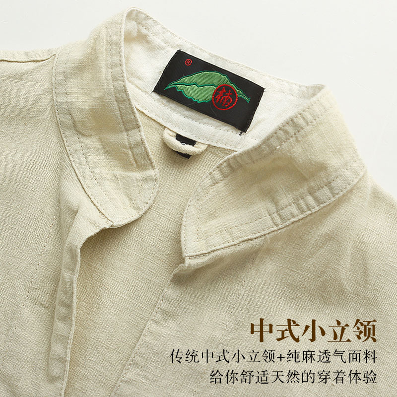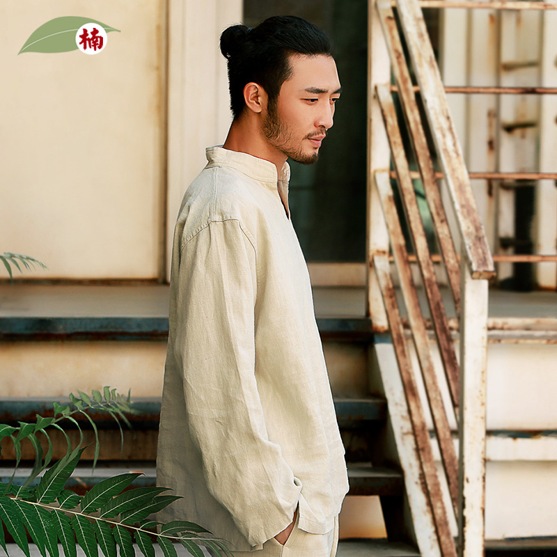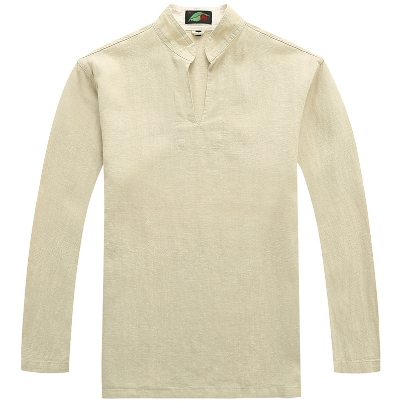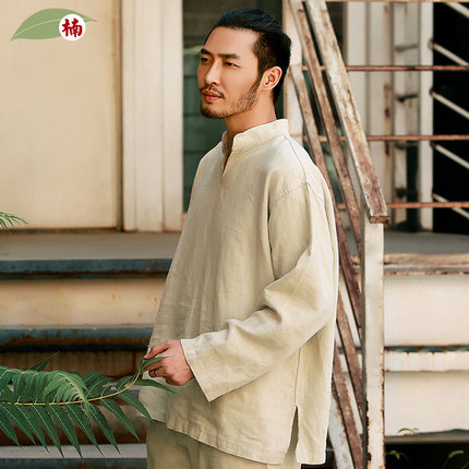 楠唐装中国风男文艺复古秋季新款上衣苎麻衬衫长袖亚麻V领T恤元序