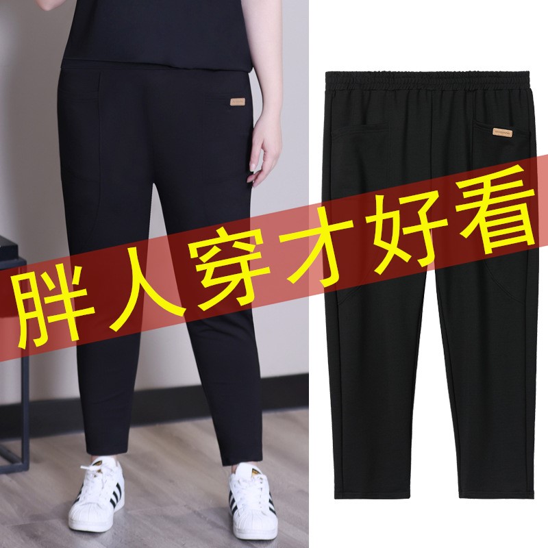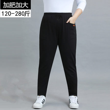 春秋加肥加大码女裤胖mm胖人高腰显瘦妈妈小脚休闲运动裤子 200斤