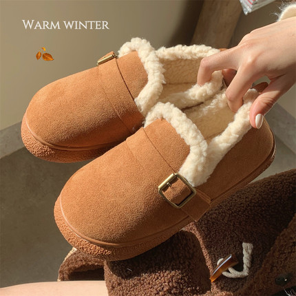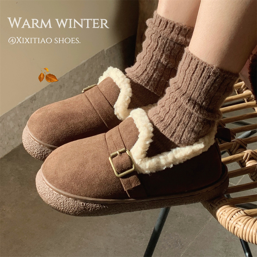 细细条 韩版秋冬百搭加绒保暖乐福鞋女外穿平底单鞋勃肯鞋豆豆鞋