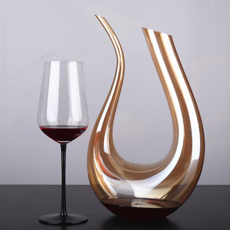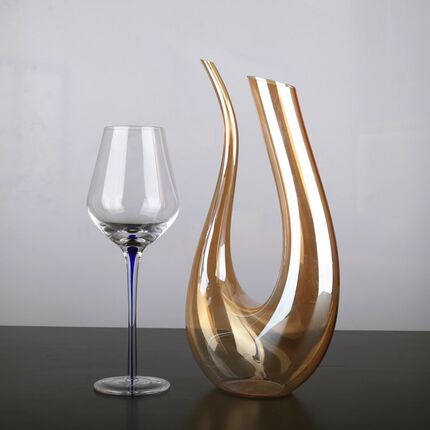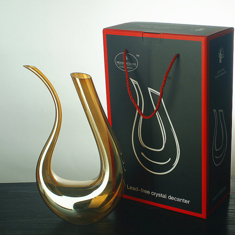 厂家直销手工水晶玻璃电镀U型醒酒器竖琴分酒器天鹅壶醒酒器