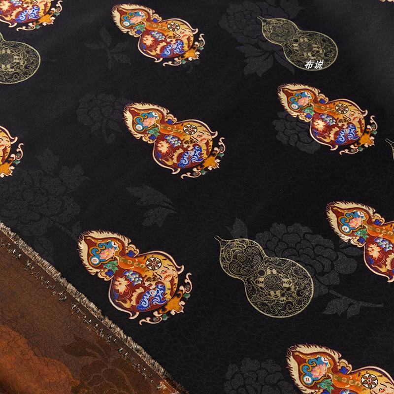 新中式国潮 八宝水葫芦香云纱花萝面料 丝滑透气旗袍提花印花布料