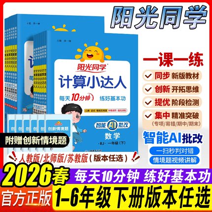 2026春阳光同学计算小达人二一三四五年级上下册数学思维训练人教RJ北师大版小学123456年级同步训练口算心算速算天天练计算能手BS